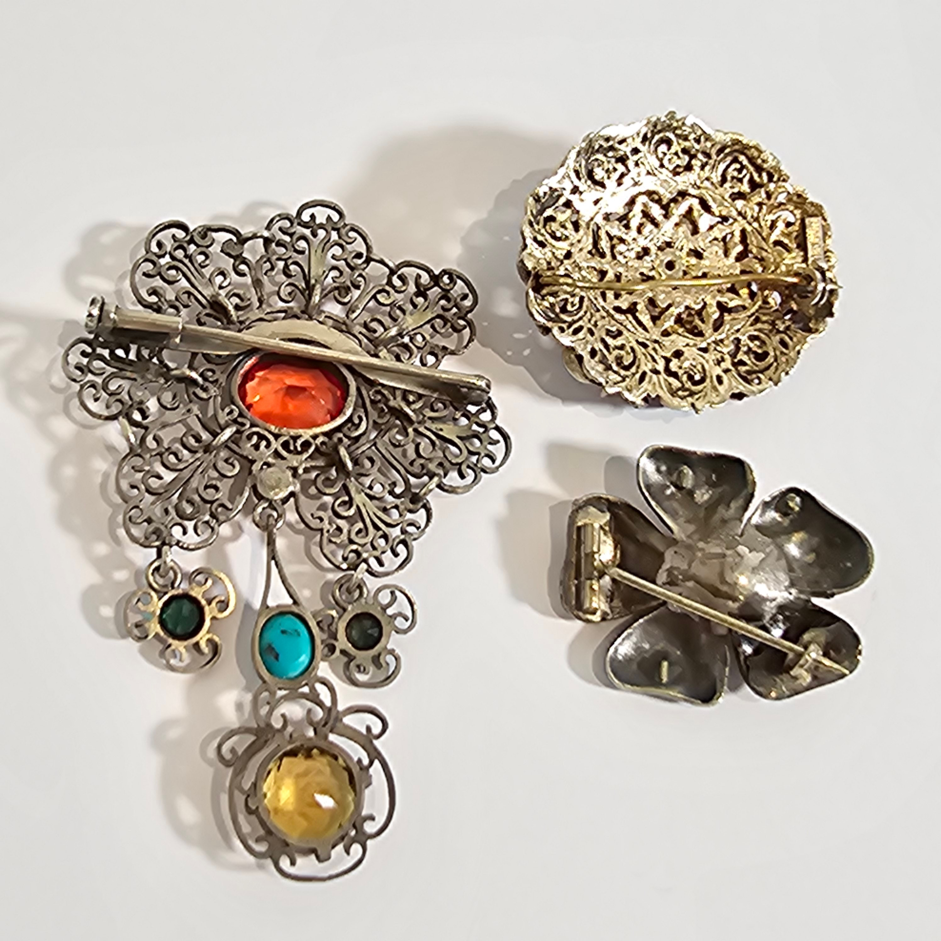 3073226. 3 BROCHES DE PLATA CALADA.