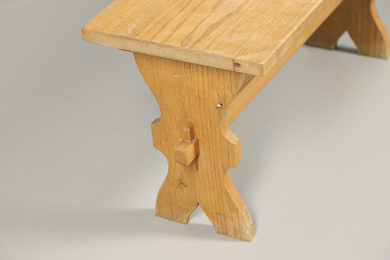 De diseño simplista, posiblemente de una escuela o iglesia. Alto 46,5 cm x Largo 97 cm x Fondo 37,5 cm.