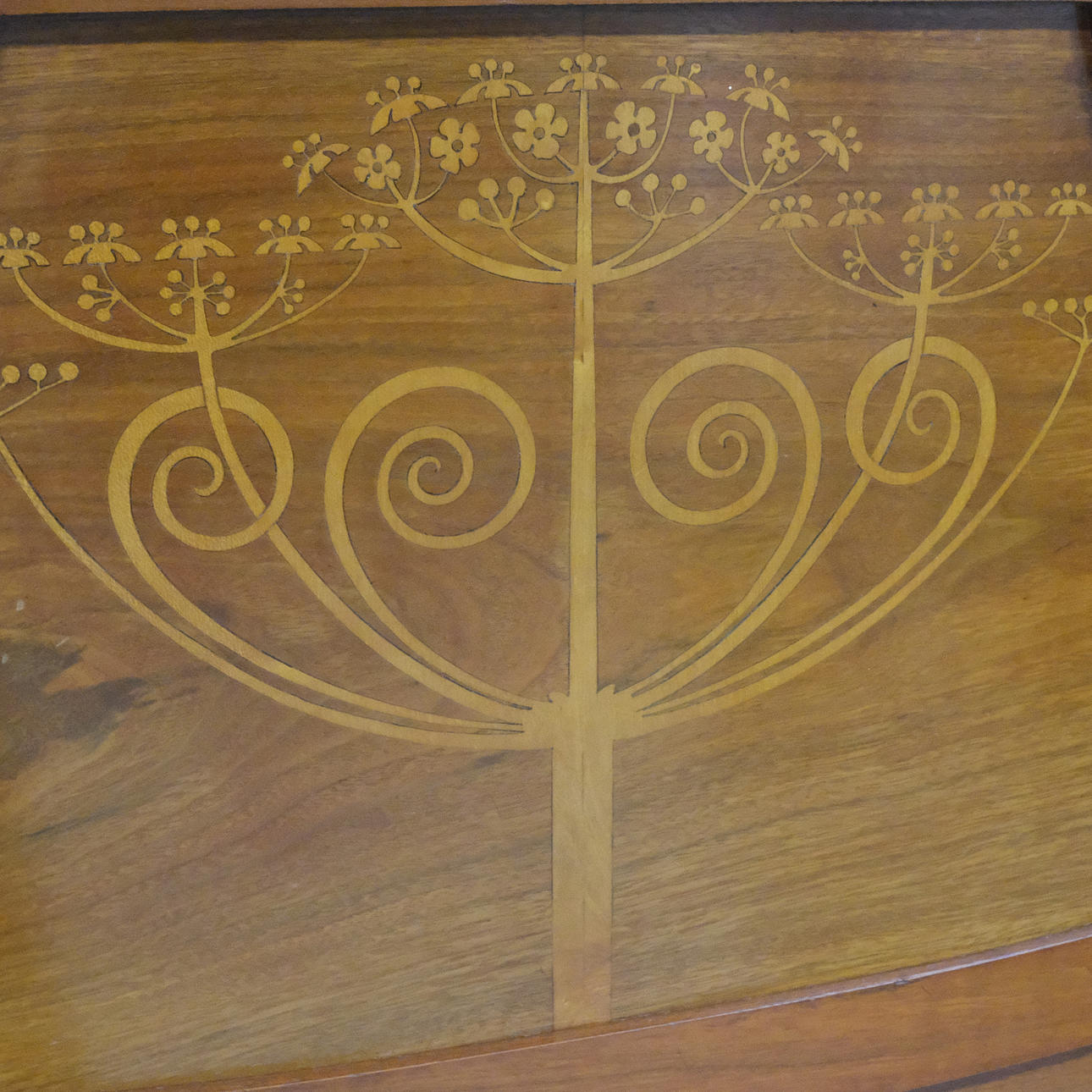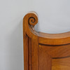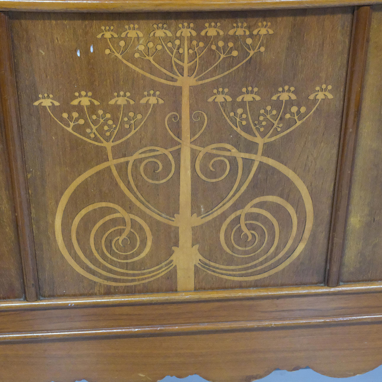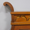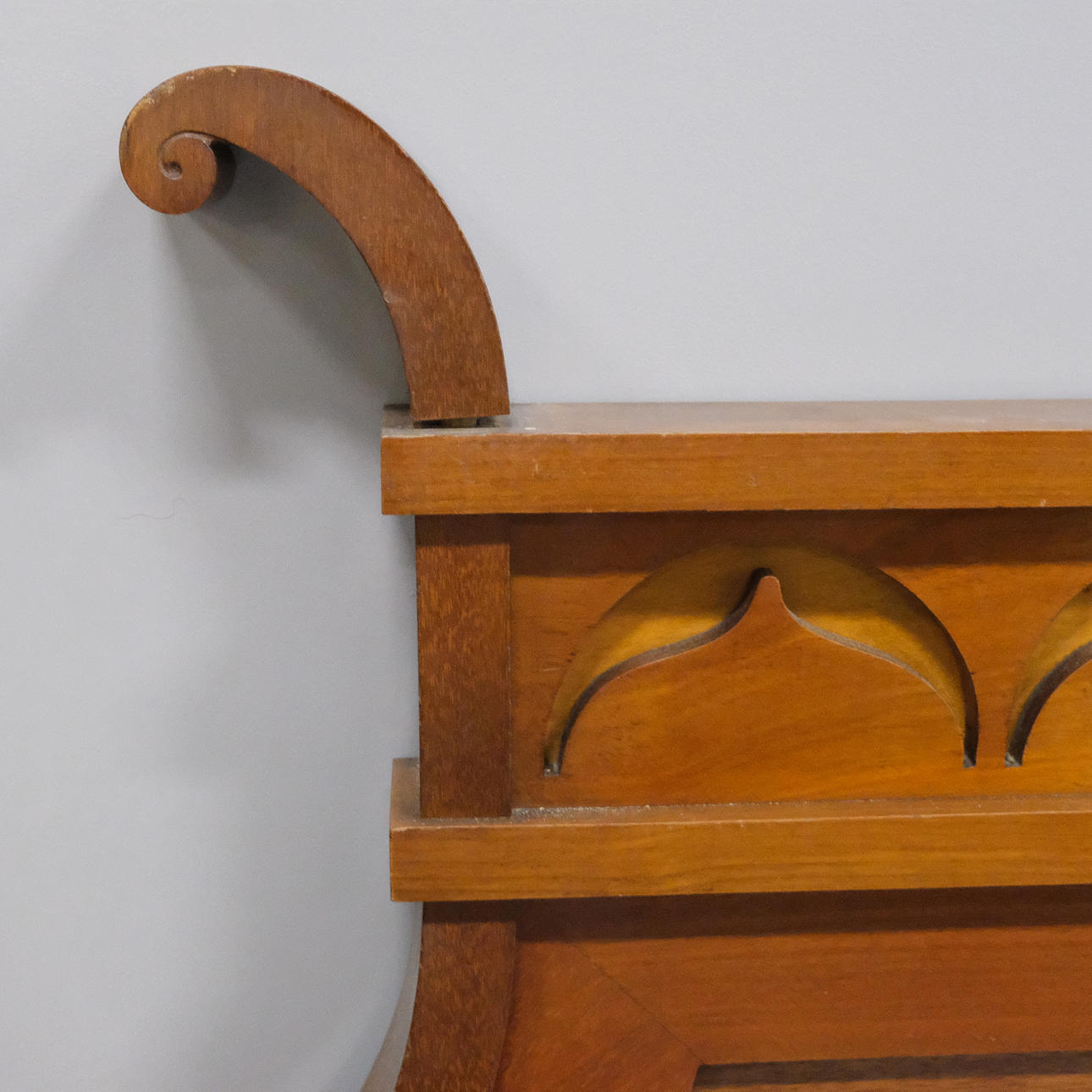 Un par de camas. Frontones con intarsia y decoración calada en caoba. Alto 100 y 152cm, ancho 107cm, largo 201cm.