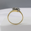 Este anillo lleva engastados 3 diamantes talla antigua con un total aproximado de 0,40 quilates. El color aproximado y la claridad de los diamantes es IJ, SI-I.