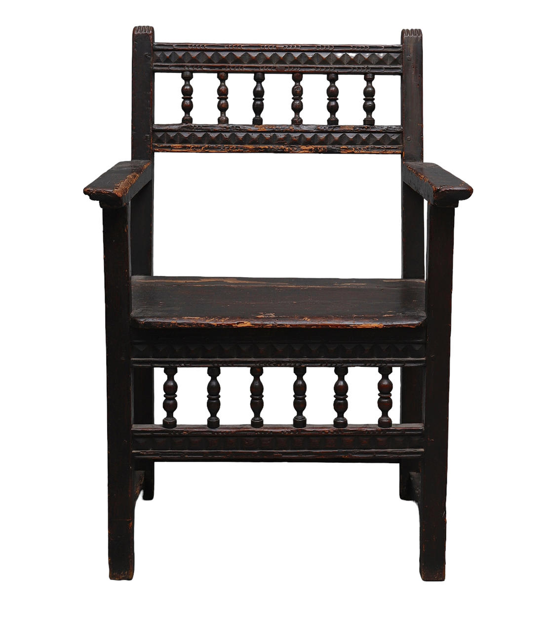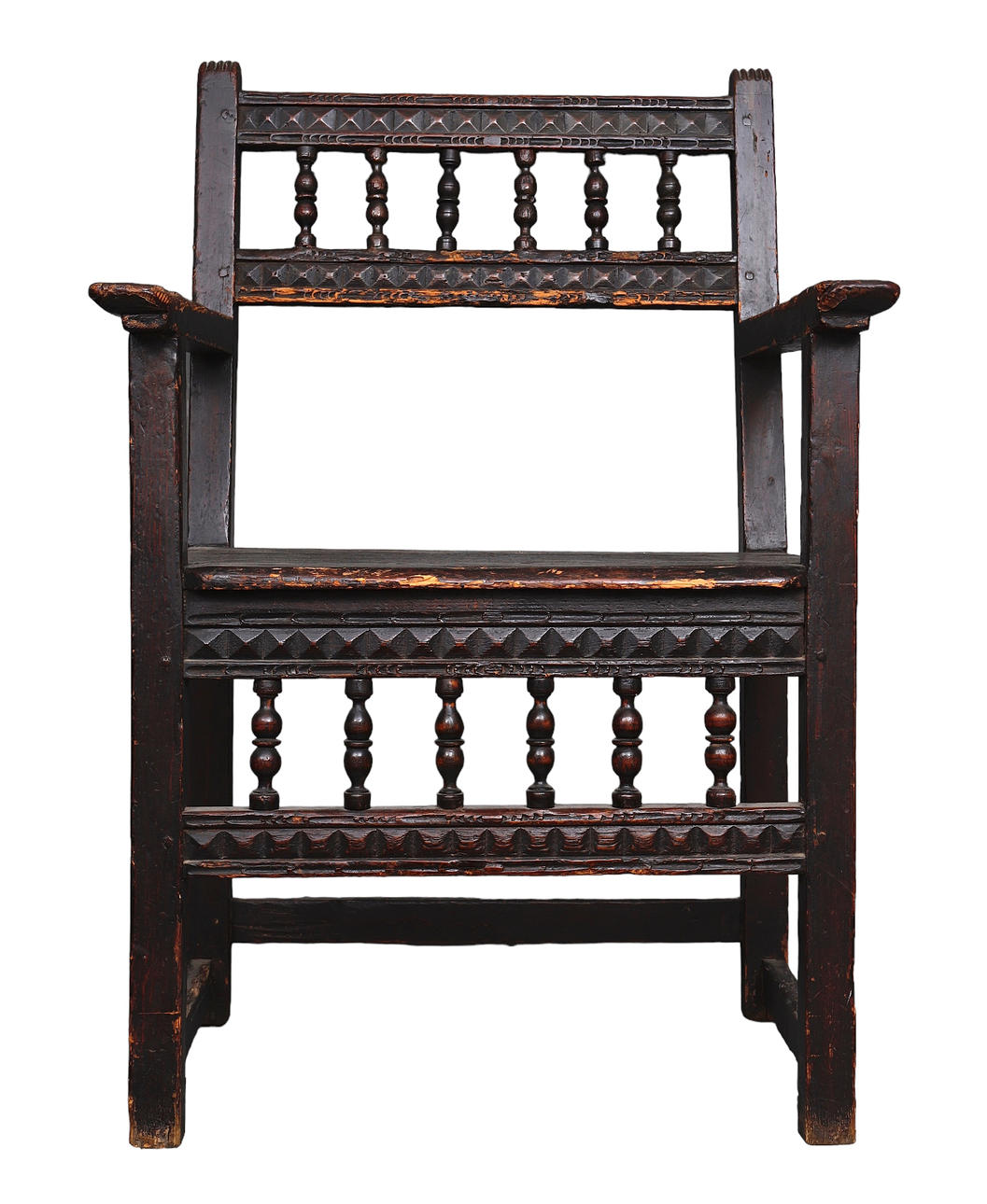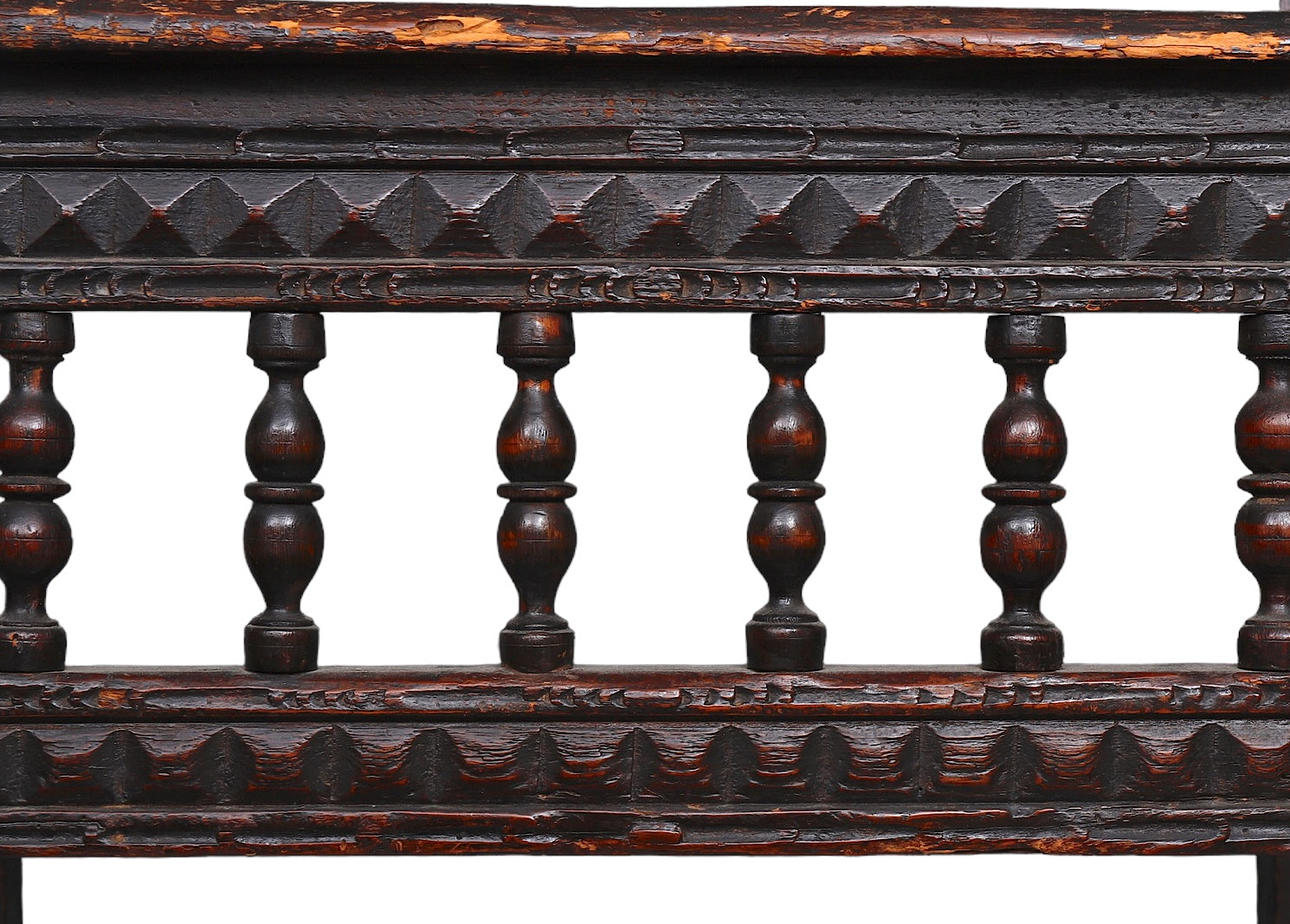 Balaustres torneados y cuatro franjas con puntas de diamantes talladas 100x67x52 cm.