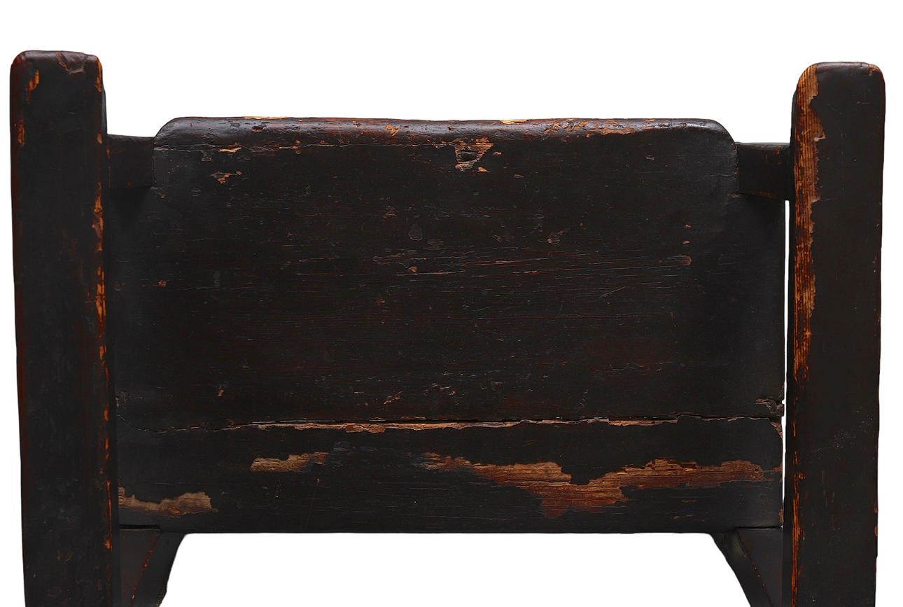 Faltas, grietas, barniz aplicado irregularmente y en mal estado. Galerías de xilófagos, aparentemente inactivos.
