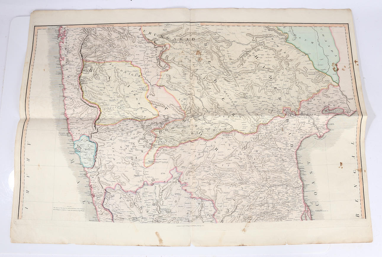 Para incluir dos ejemplos en blanco y negro de la India y un mapa plegable en color de la India publicado en 1824 por James Wyld, el más grande mide 84 cm de ancho y 58 cm de alto (3).