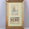 Una acuarela está firmada con monograma. aproximadamente 16 x 9,5 / 10 x 14 cm. Tamaño del marco 47 x 31 cm.