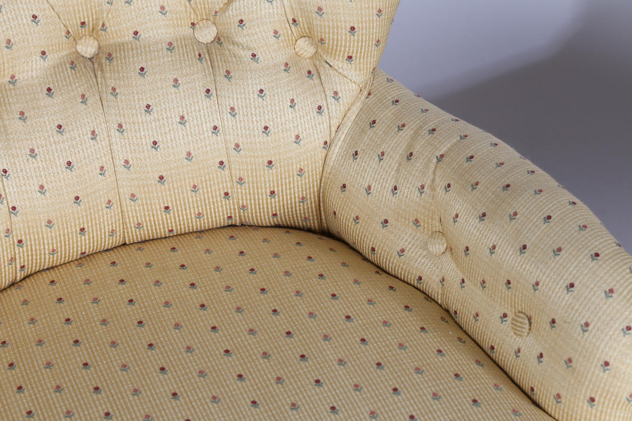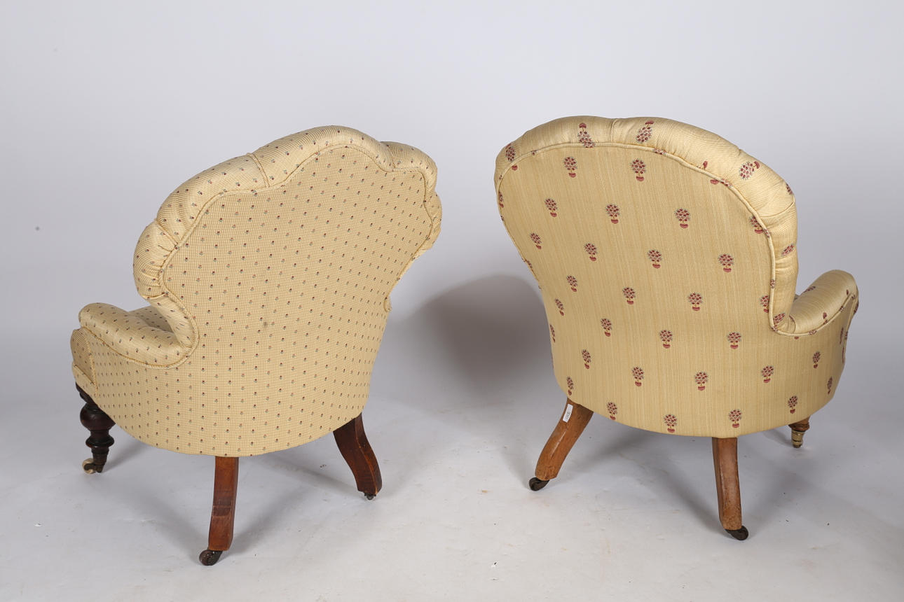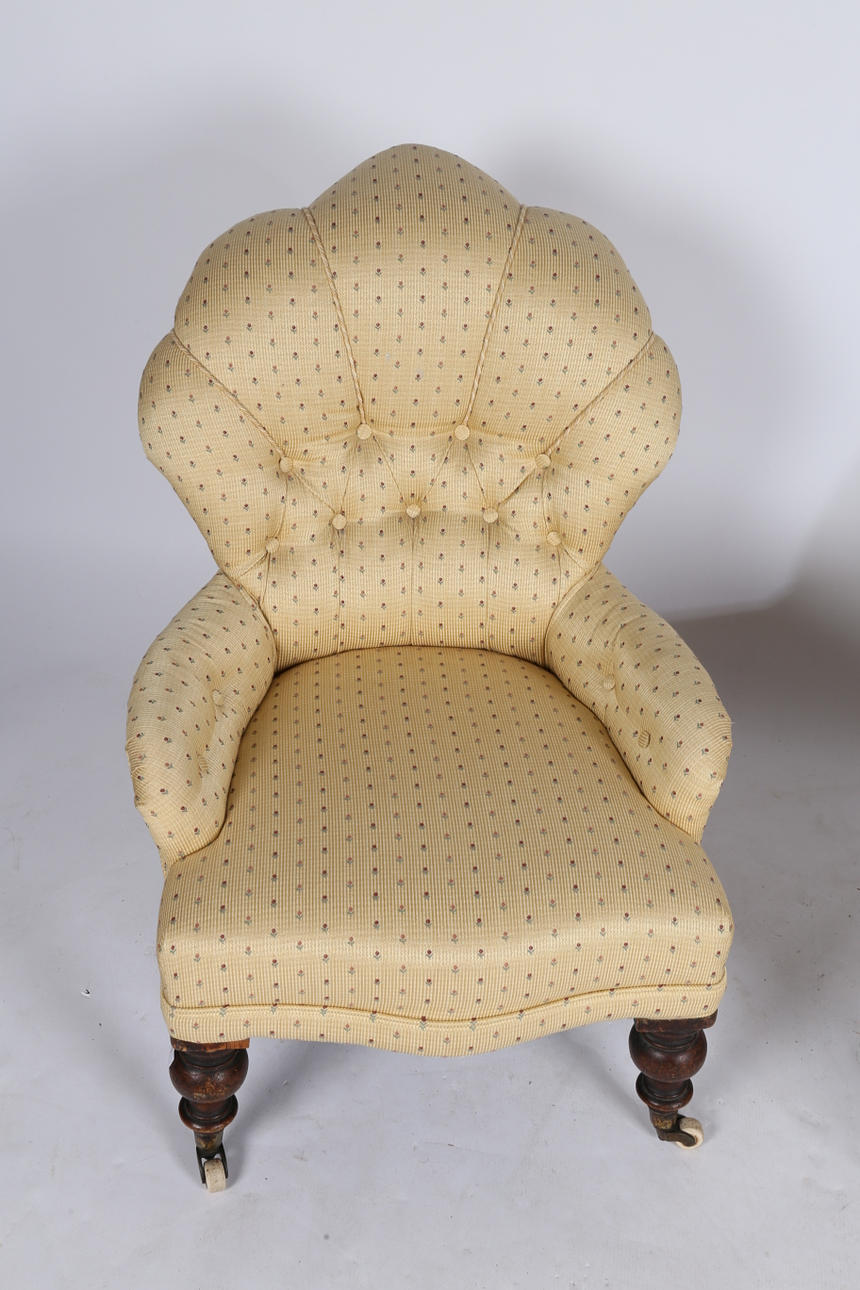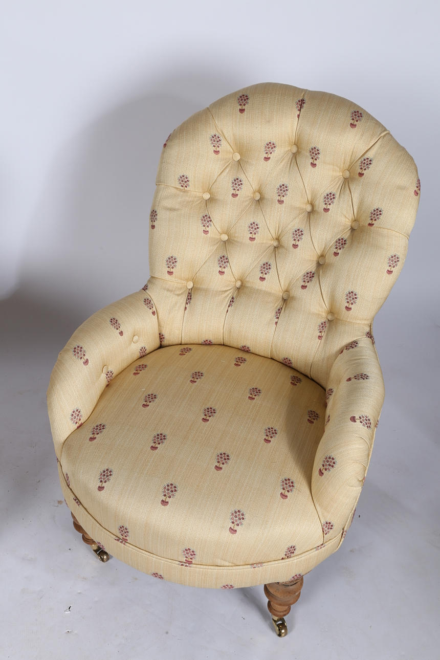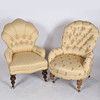 Dos sillones de enfermería victorianos, ambos con respaldos con botones y patas giradas, la más grande de 81 cm de altura.