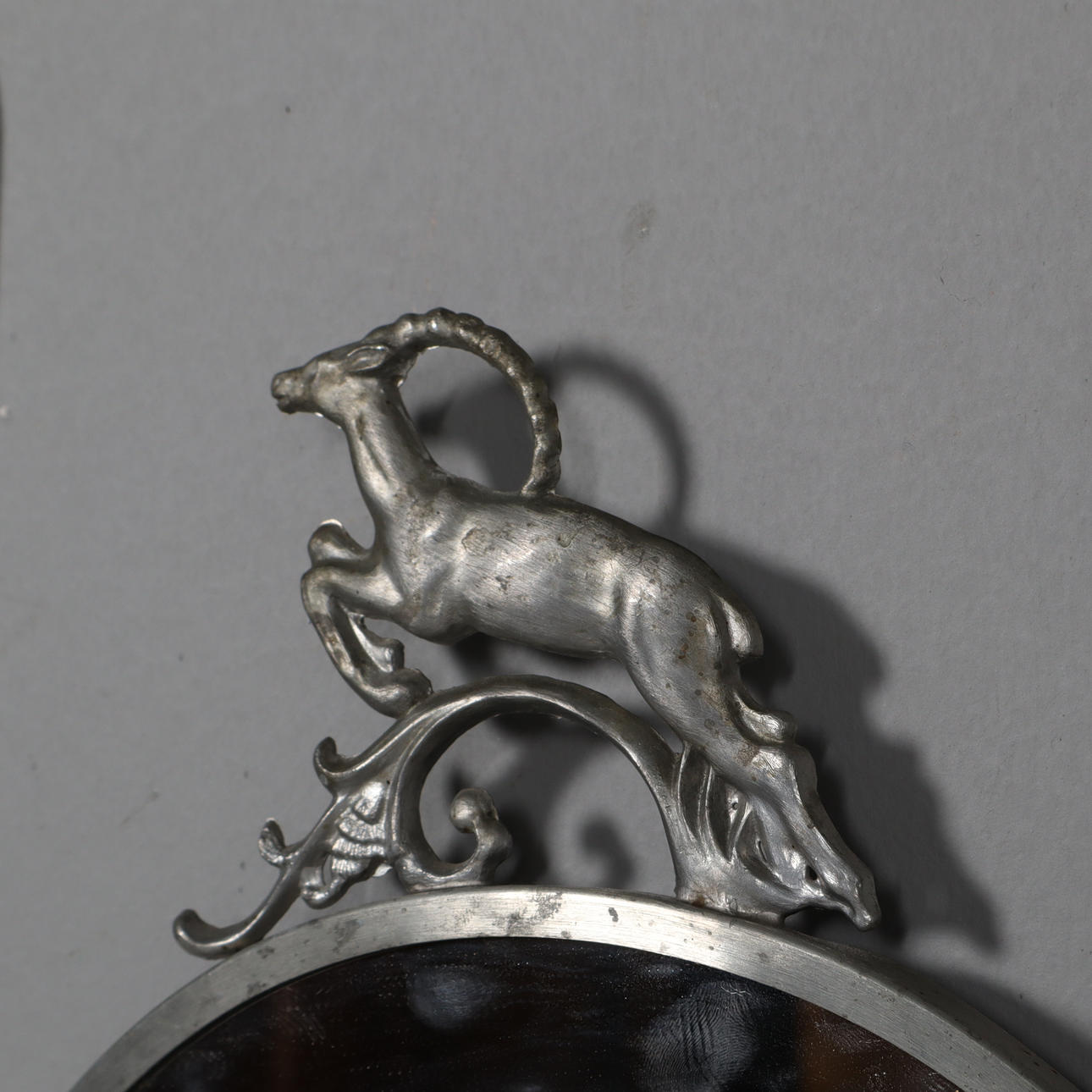 Desgastes normales de uso, los candelabros están reparados en la parte trasera, el espejo cabe holgadamente en el marco.