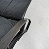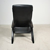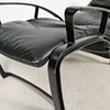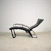 Sillón relax modelo IP 84 S. Diseño años 80. Construcción infinitamente ajustable de aluminio fundido lacado en negro, tapizados en cuero negro. H. 112, B. 73, fondo 120 cm. Marcado en la parte inferior.