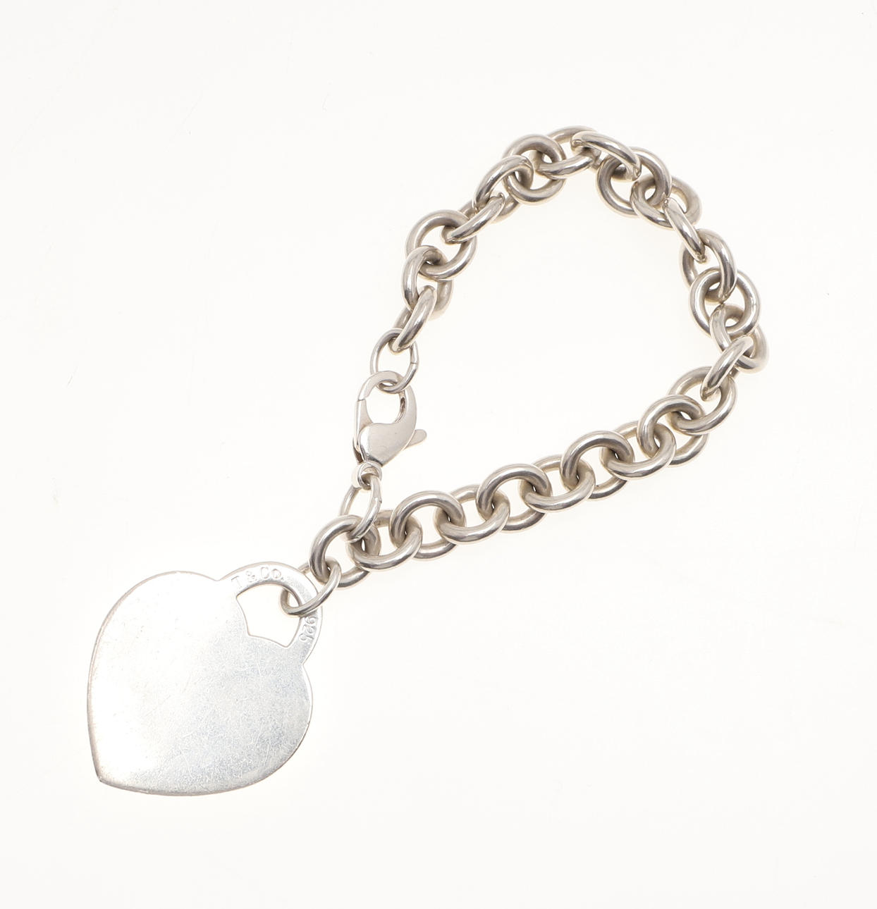 suspendiendo un colgante de corazón, firmado T & Co en el reverso, 16,5 cm de largo, 43,9 gramos, con estuche Tiffany y caja exterior.