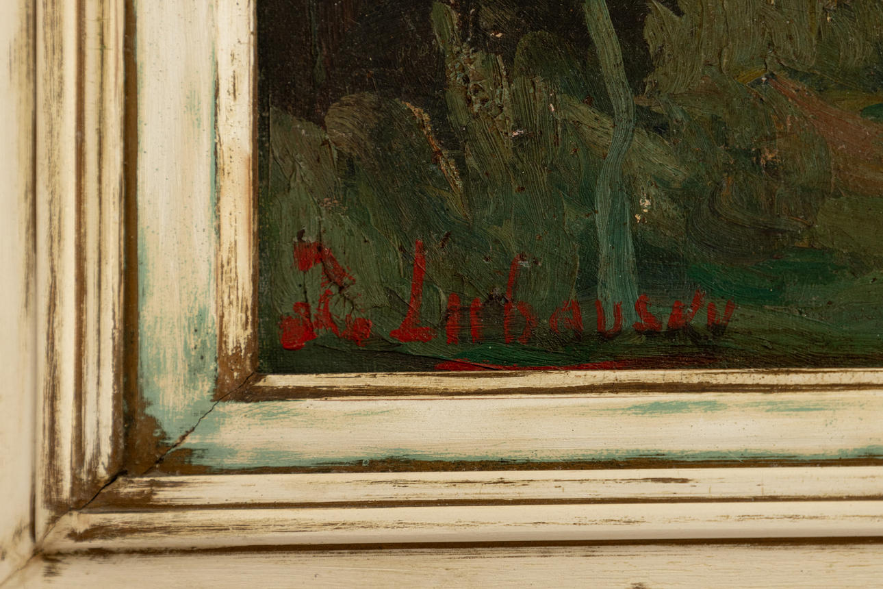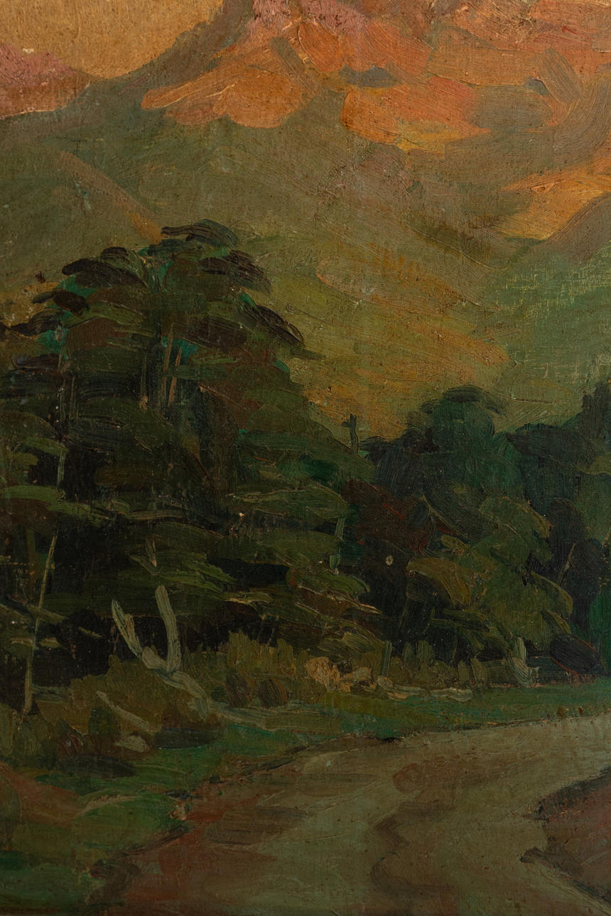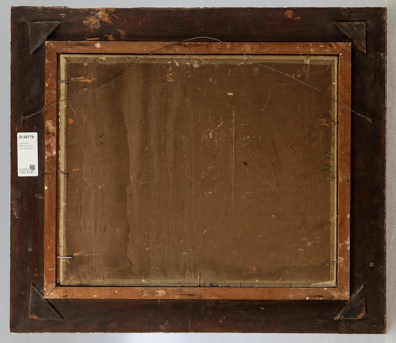 Artista desconocido, paisaje sudamericano, óleo sobre lienzo, montado sobre cartón, firmado de forma poco legible «D. Lubavsky» (?), aprox. 47 x 56 cm, con marco aprox. 67 x 76 cm.