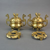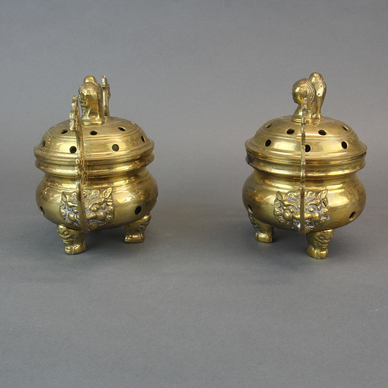 Un par de incensarios chinos de bronce y latón de principios del siglo XX sobre soportes, 18 cm de altura.