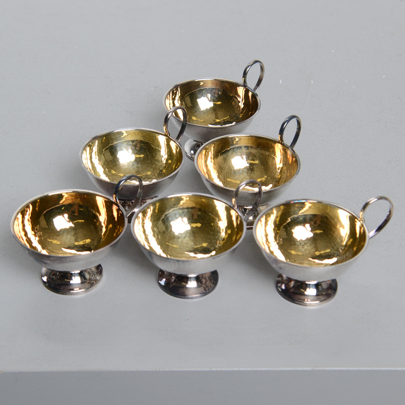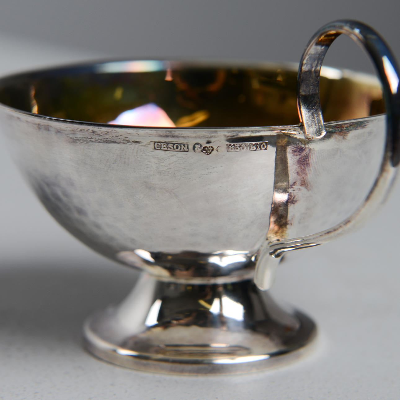 Decoración martillada. Interior dorado. Peso 187 gramos.