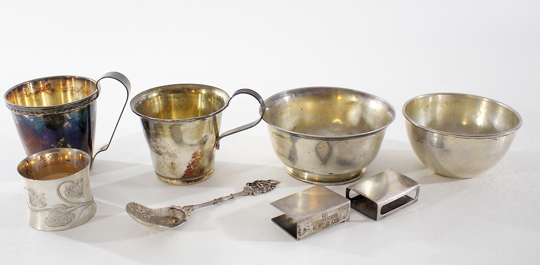 315055. OBJETOS DE PLATA, 8 piezas, 340 gramos.