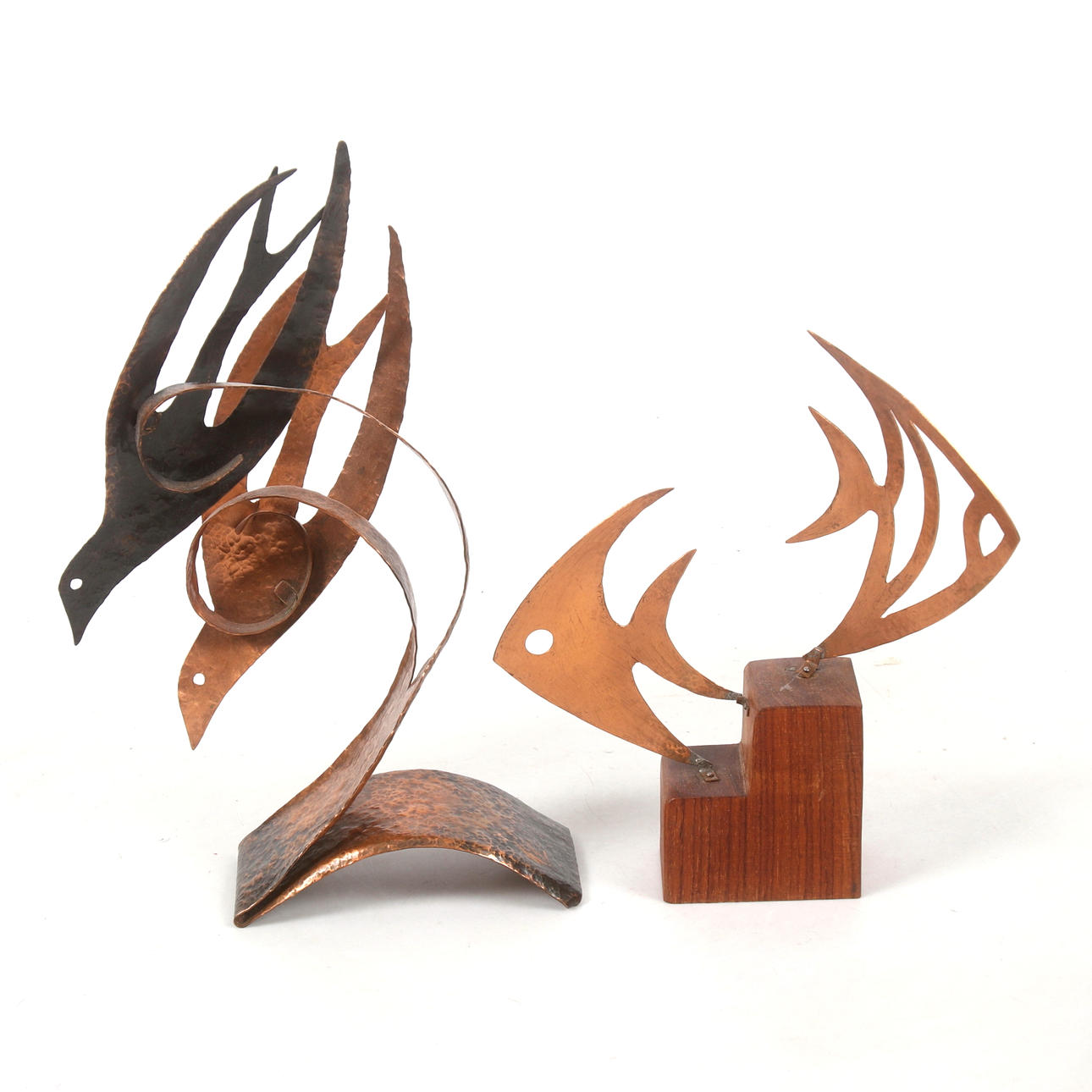 3155222. DOS ESCULTURAS DE COBRE, firmadas AE.