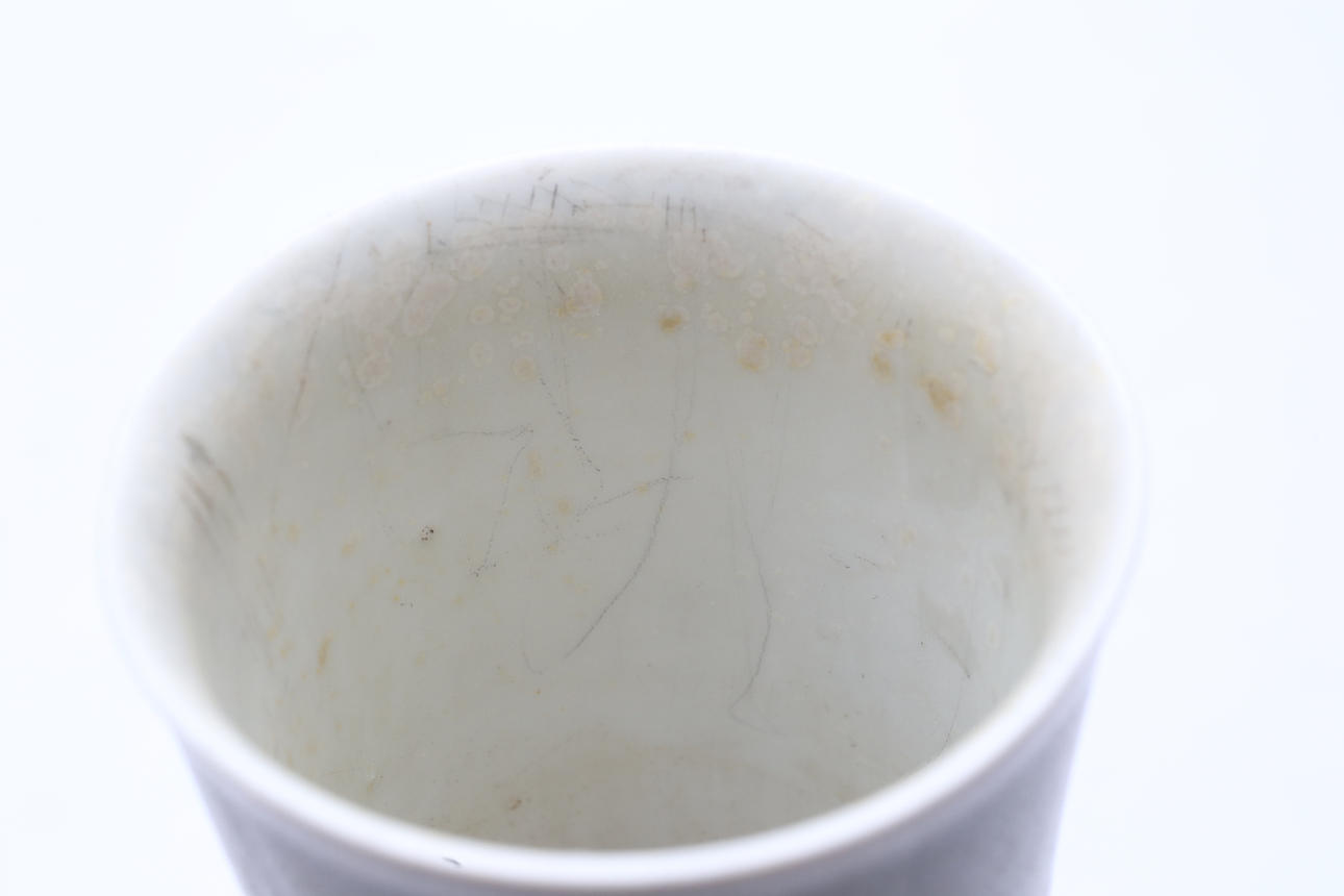 Manchas. Sucio por dentro. Parte inferior con defectos de fabricación.