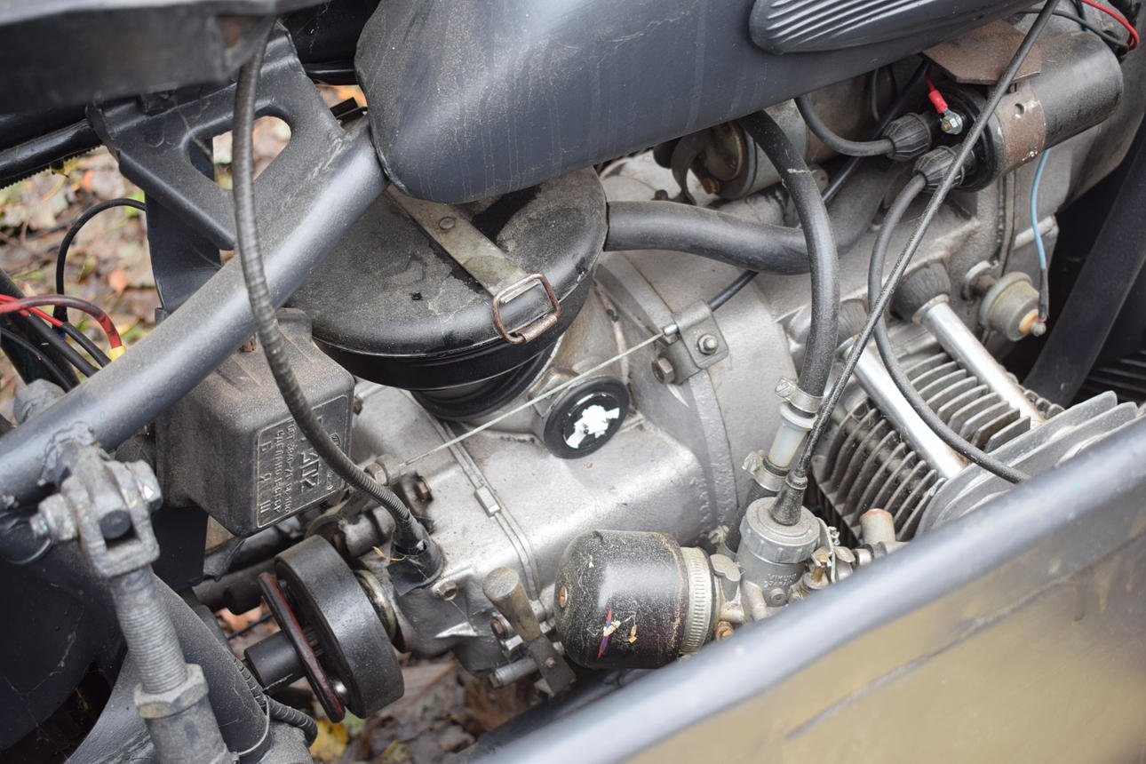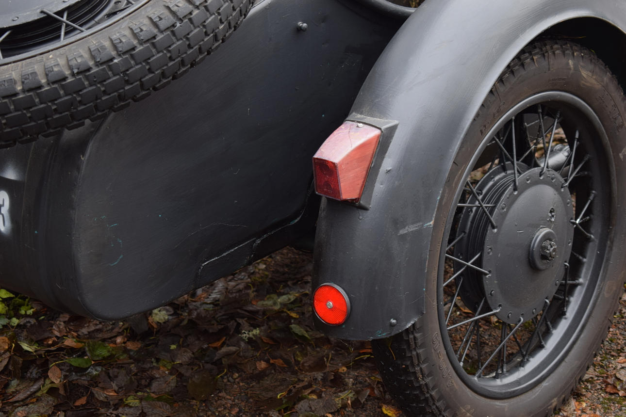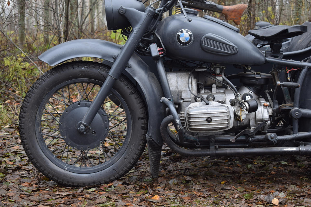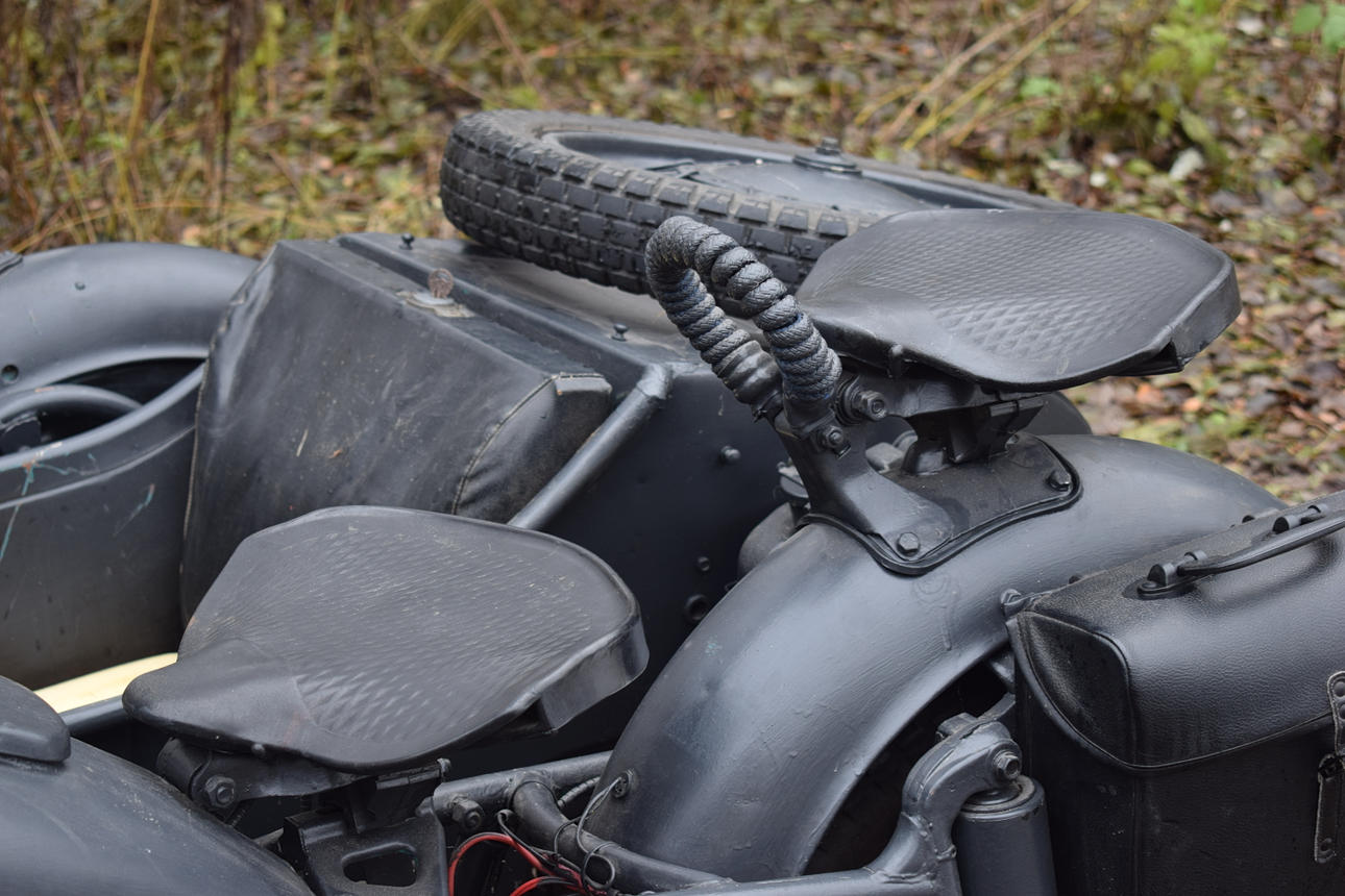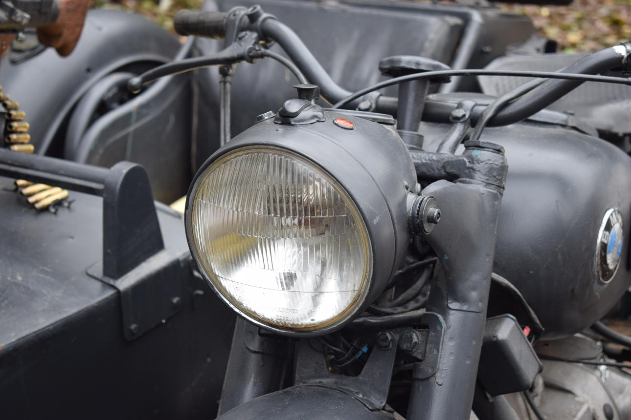Reconstruida en una motocicleta del ejército alemán con el emblema BMW y la ametralladora Réplica MG34.