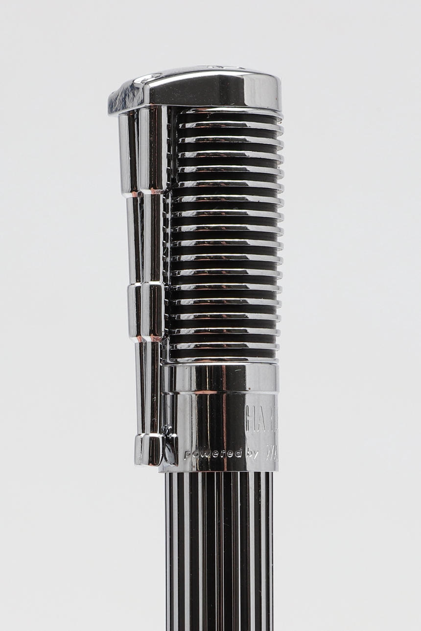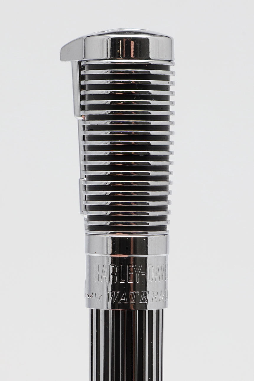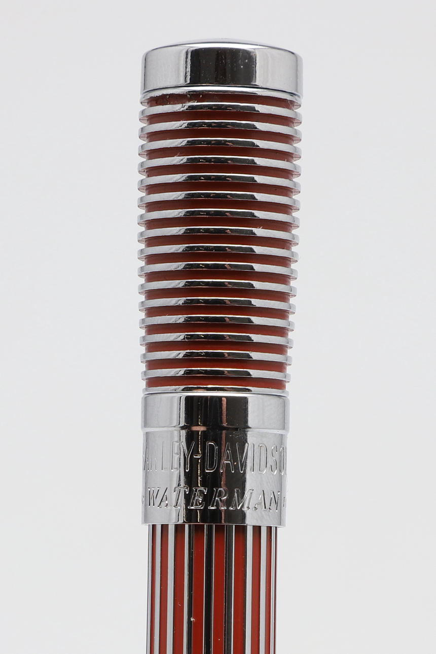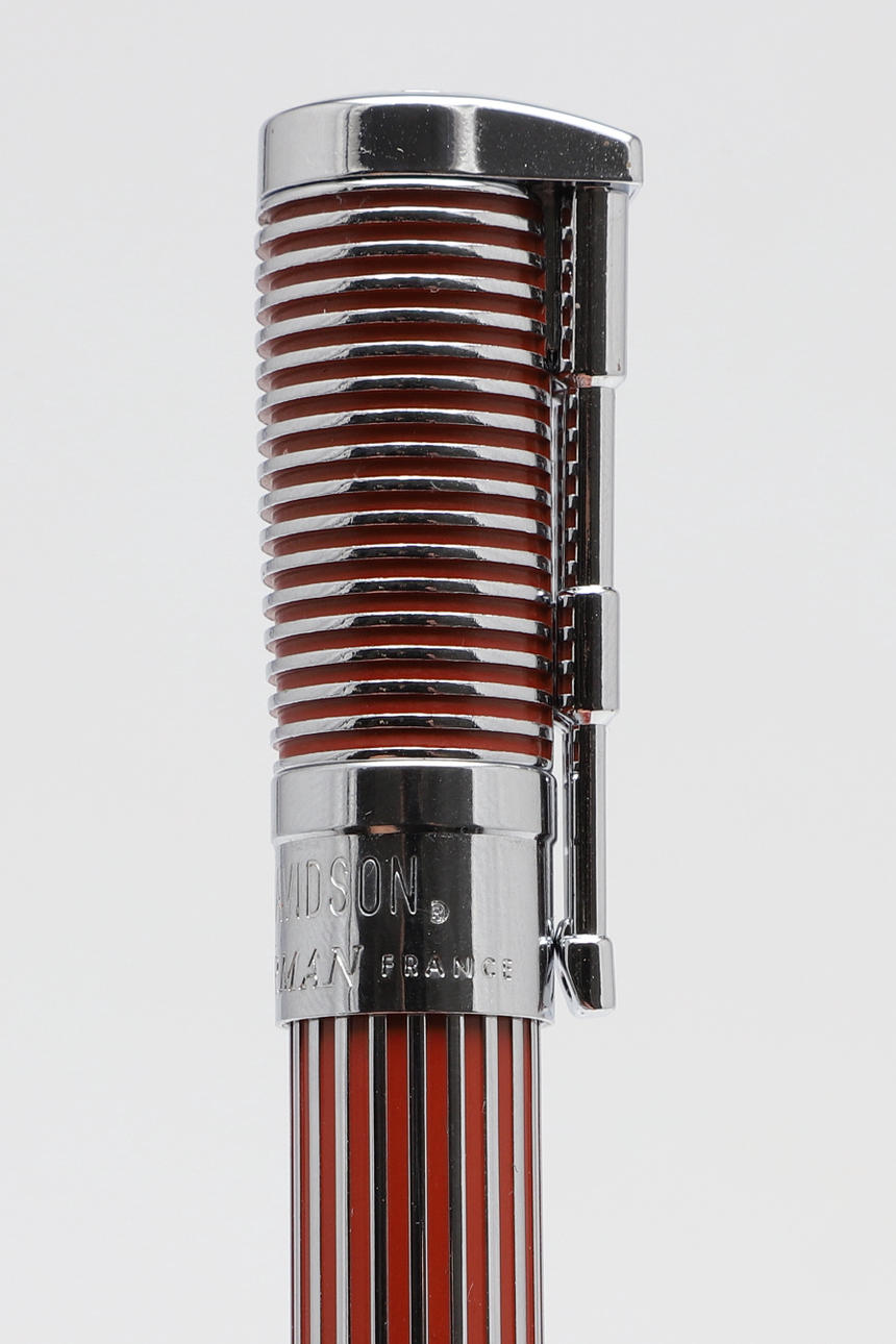 uno con carcasa roja y cromada, el otro en cromo y negro, diseñado para parecerse a un pistón y el clip como las horquillas delanteras de una motocicleta con una Harley Davidson (2).