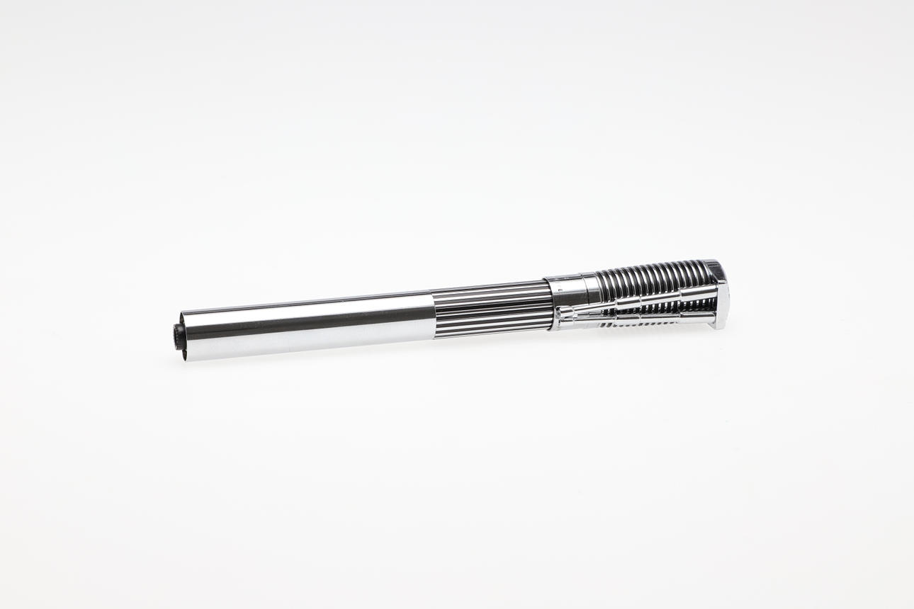 Bolígrafo rojo sin entintar, muy bueno en general, falta el otro extremo del bolígrafo.