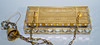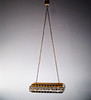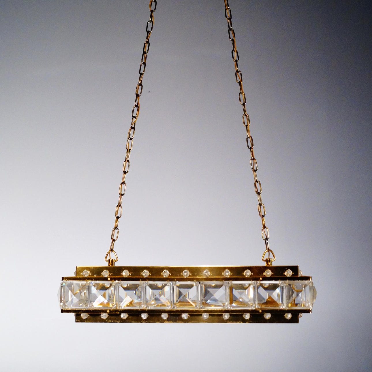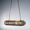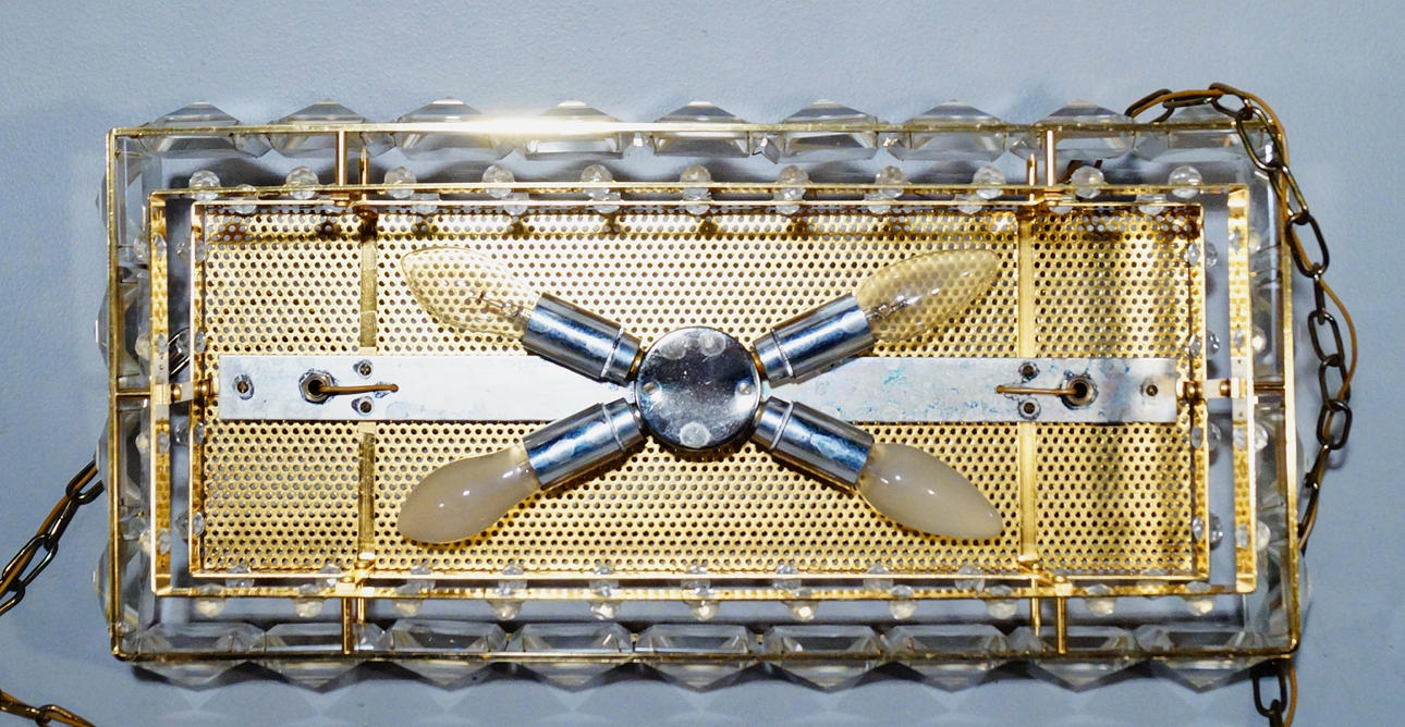 De metal amarillo con prismas pequeños y grandes, espacio para 4 bombillas.