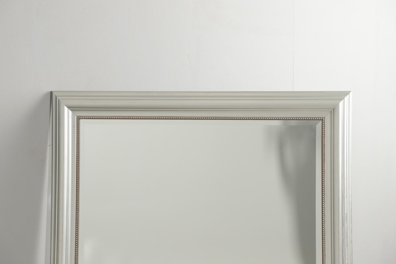 Color plateado, fabricado por IKEA «Levanger», marco moldeado con borde de cuentas y cristal de espejo biselado. 130 cm x 94 cm.