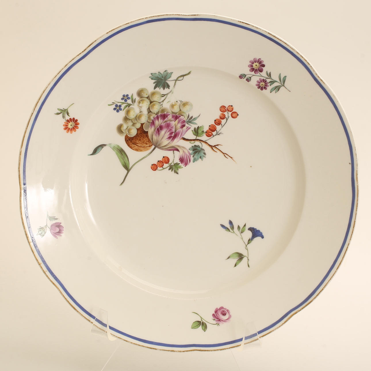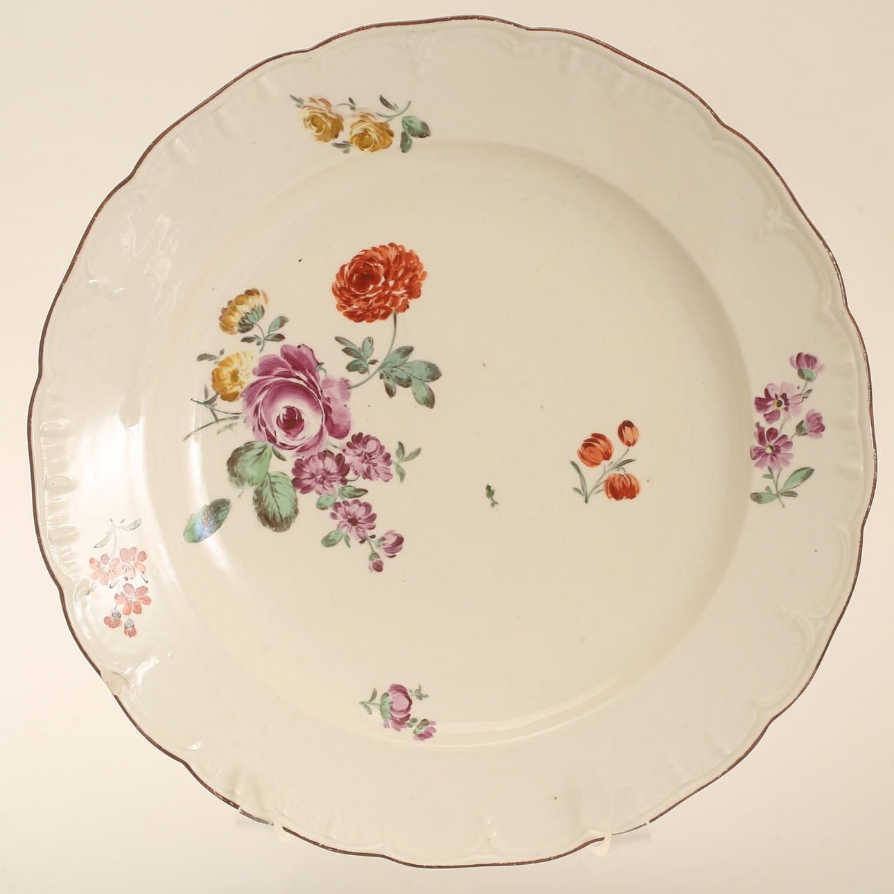 1 plato, Meissen del siglo XVIII con cocción, diámetro aprox. 23 cm.