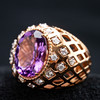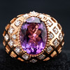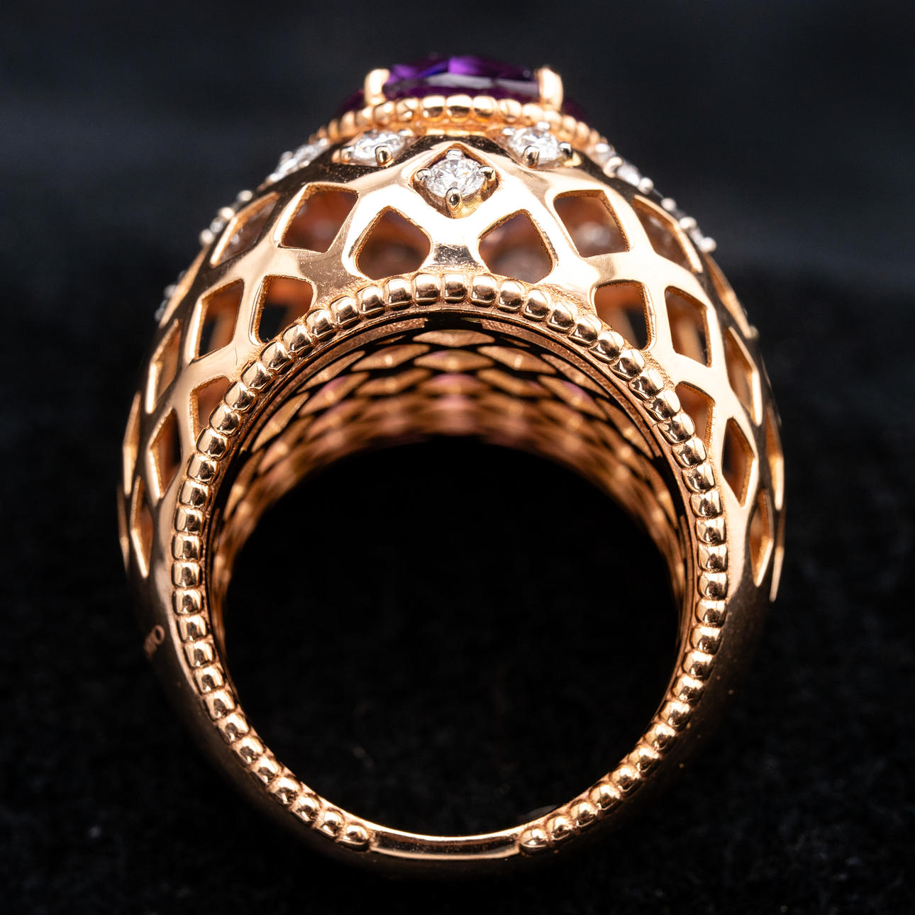 Anillo de «Chimento» en oro 750, engastado con una amatista en el centro y rodeado de diamantes por un total de aproximadamente 0,66 quilates. Tamaño aproximado del anillo 54 Peso aprox. 11 gramos.