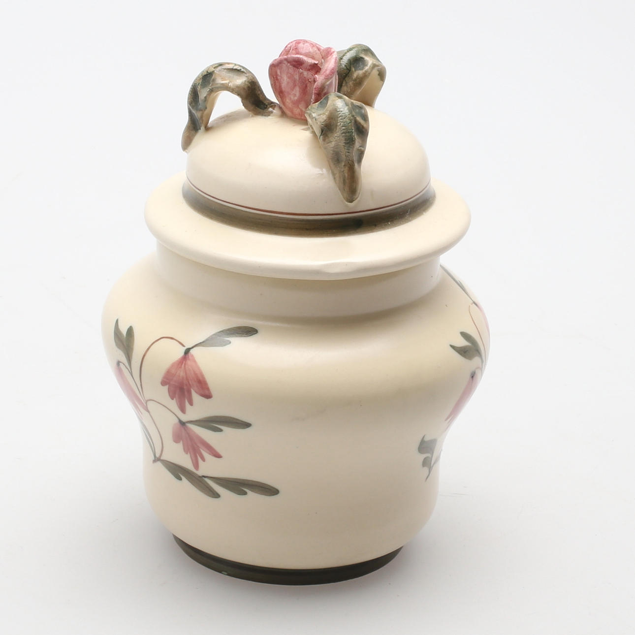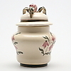 Marcado debajo: Bo Fajans, Suecia, 3468/R. Decoración de flores. Tapa decorada con rosa y tres hojas. Altura total 16 cm.