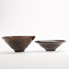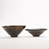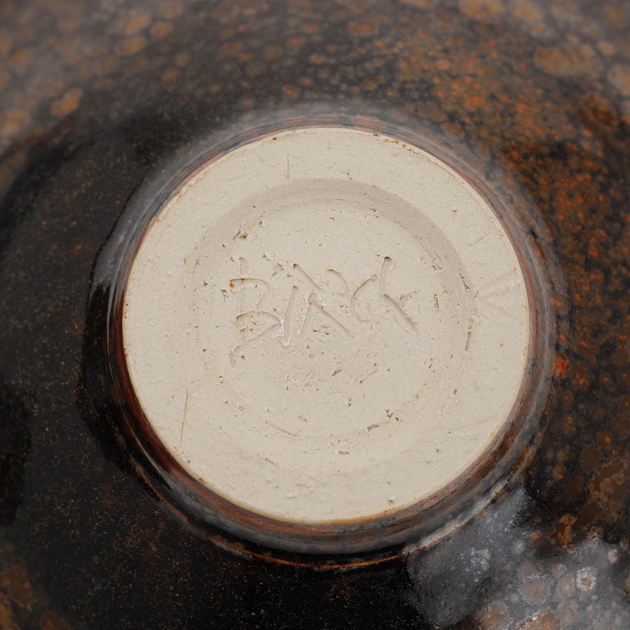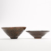 2 cuencos de gres esmaltado moteado. Aage Birck n. 1941. Taller propio. Dinamarca. Un cuenco firmado «Brick». Un cuenco inscrito en letras negras.