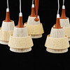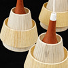 Estructura de teca, vasos con hilo de lino envuelto, 47 cm de ancho aproximadamente y 60 cm de altura, sin incluir el portavasos.