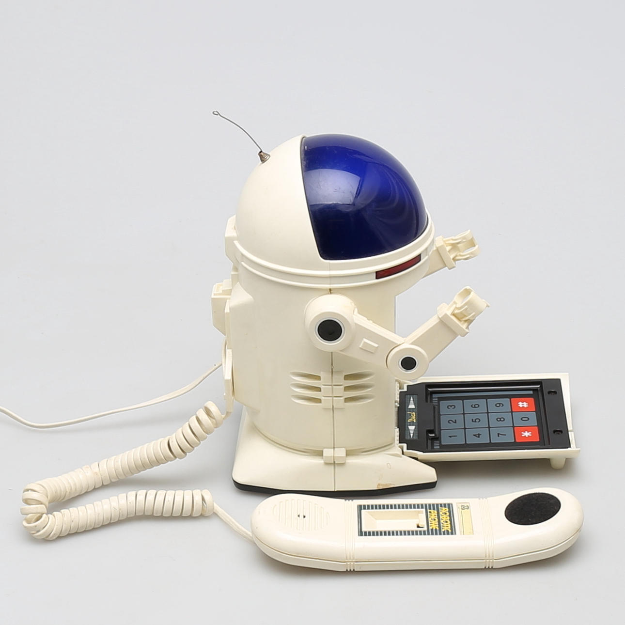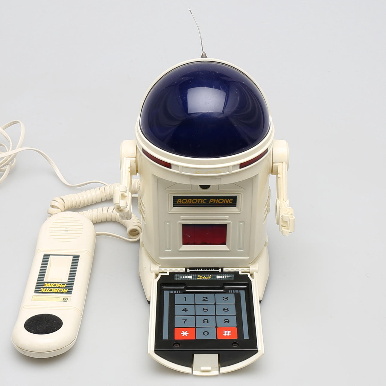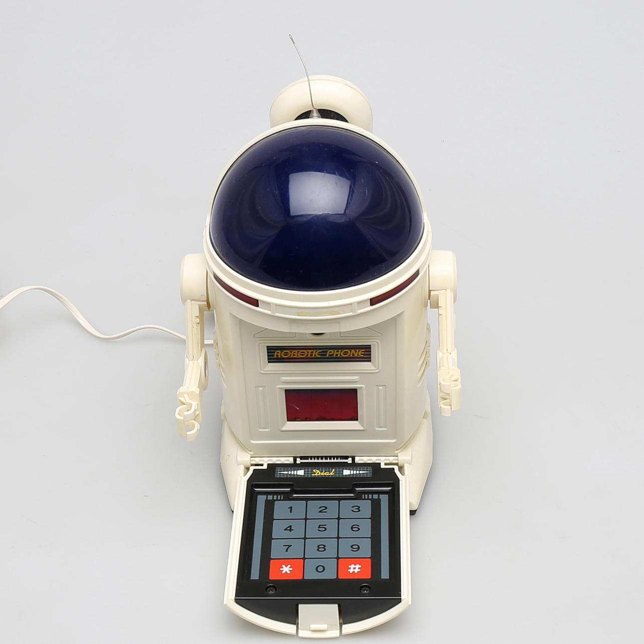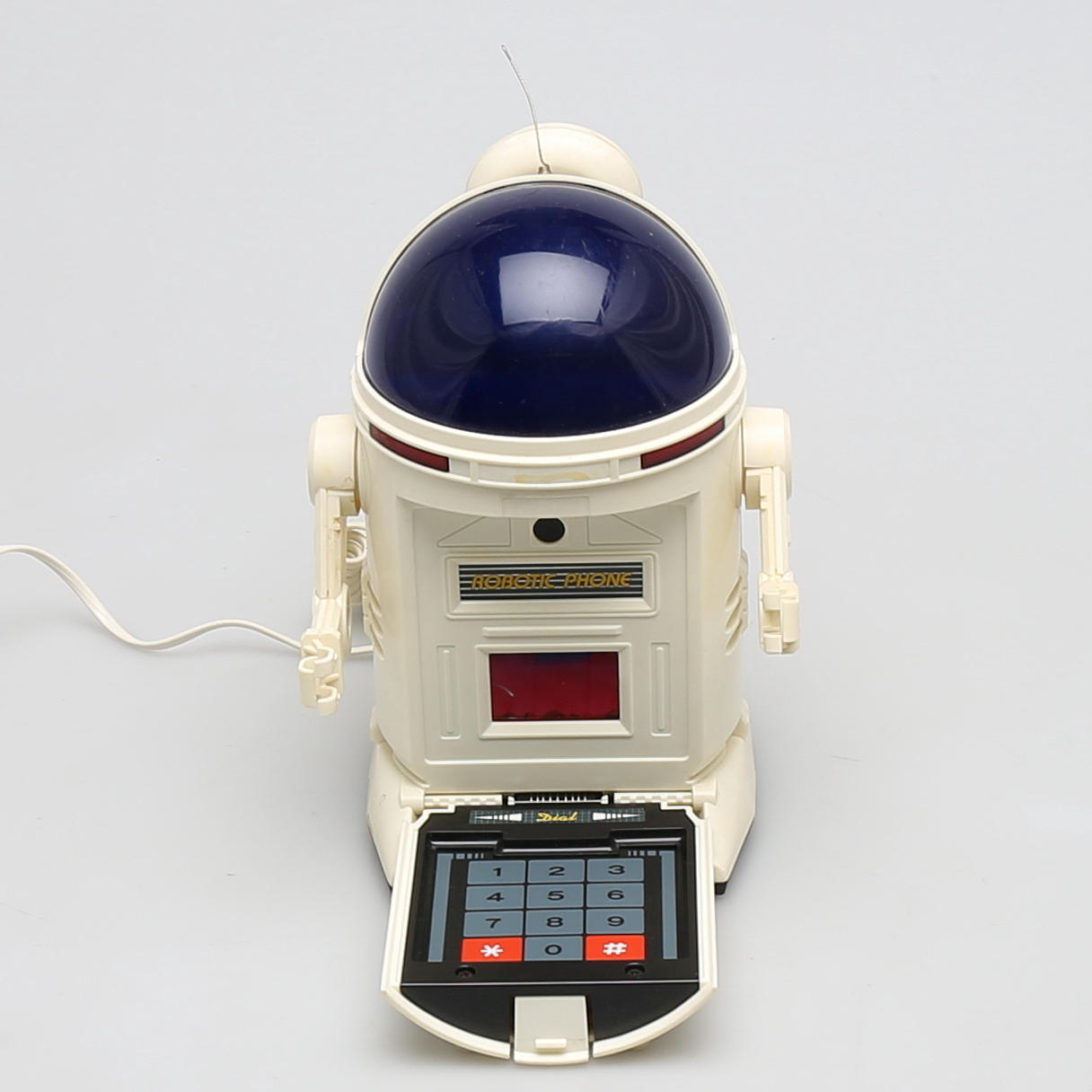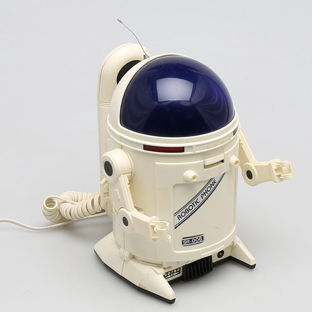 Teléfono modelo robot con teclado oculto. Altura 22 cm.