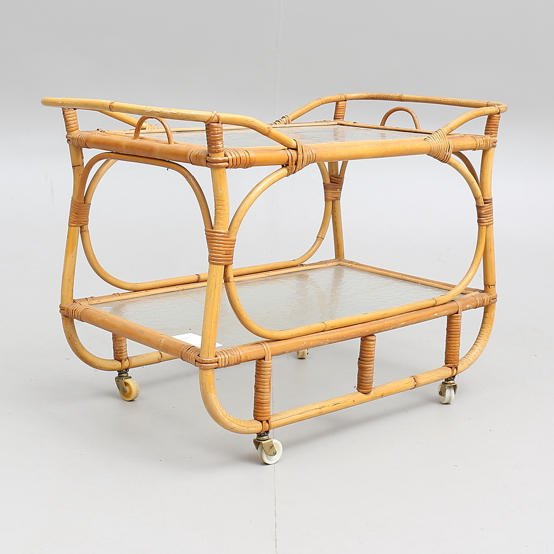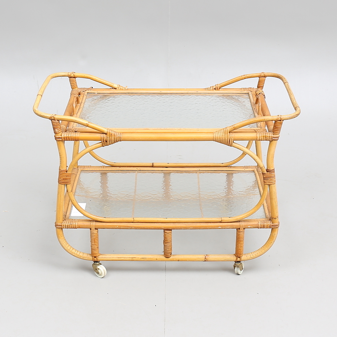 320585. CARRO DE SERVICIO, bambú, mimbre y vidrio, década de 1900.