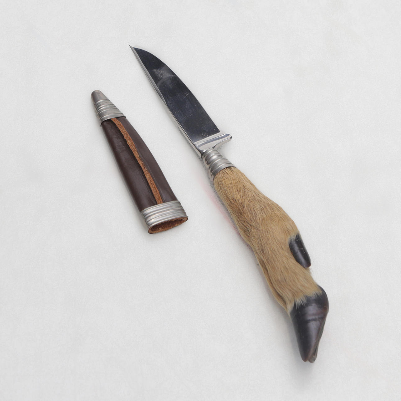CUCHILLO, con mango hecho de pezuña de ciervo.