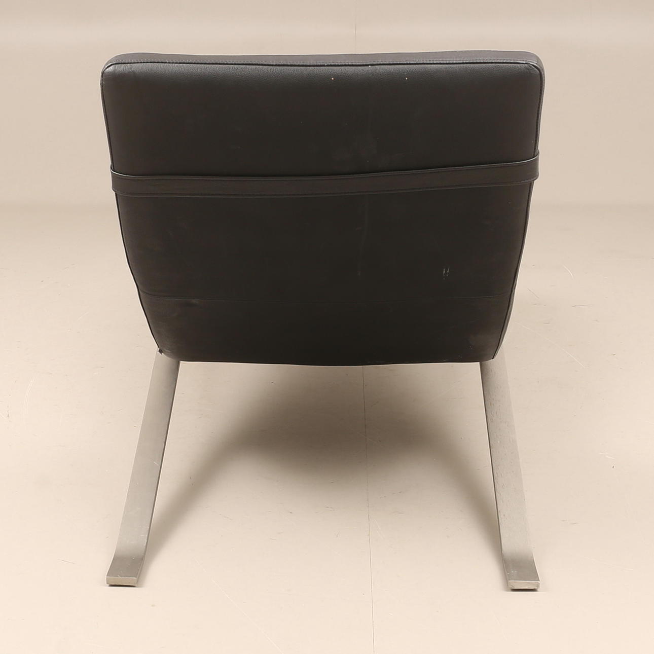 Cuero negro, base de metal, altura aproximadamente 82 cm, longitud aproximadamente 160 cm.