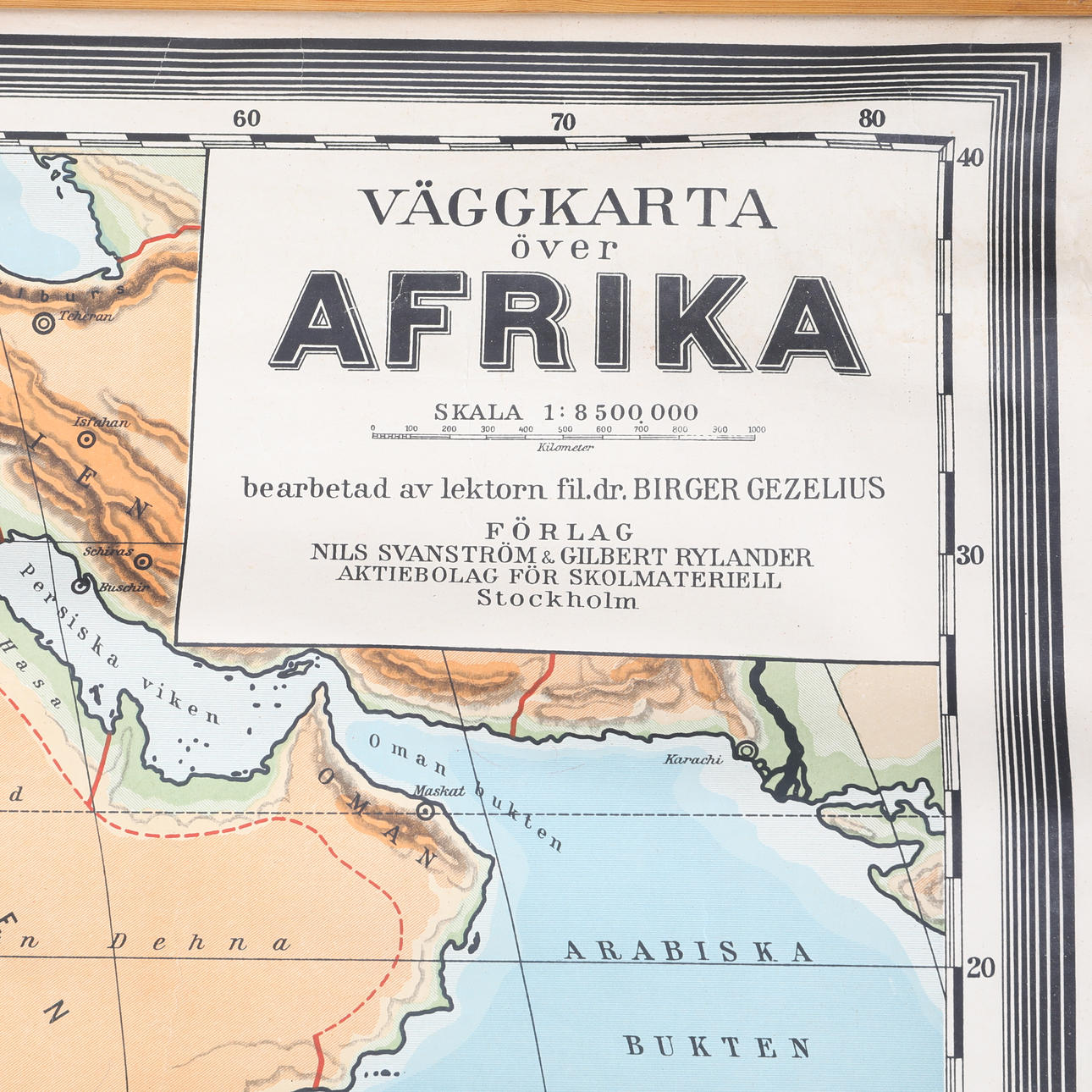 Mapa mural de África, editado por el profesor Birger Gezelius, escala 1:8500000, editores Nils Svanström y Gilbert Rylander