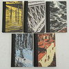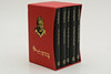Cinco volúmenes en un casete decorado con firma y retrato en oro.
