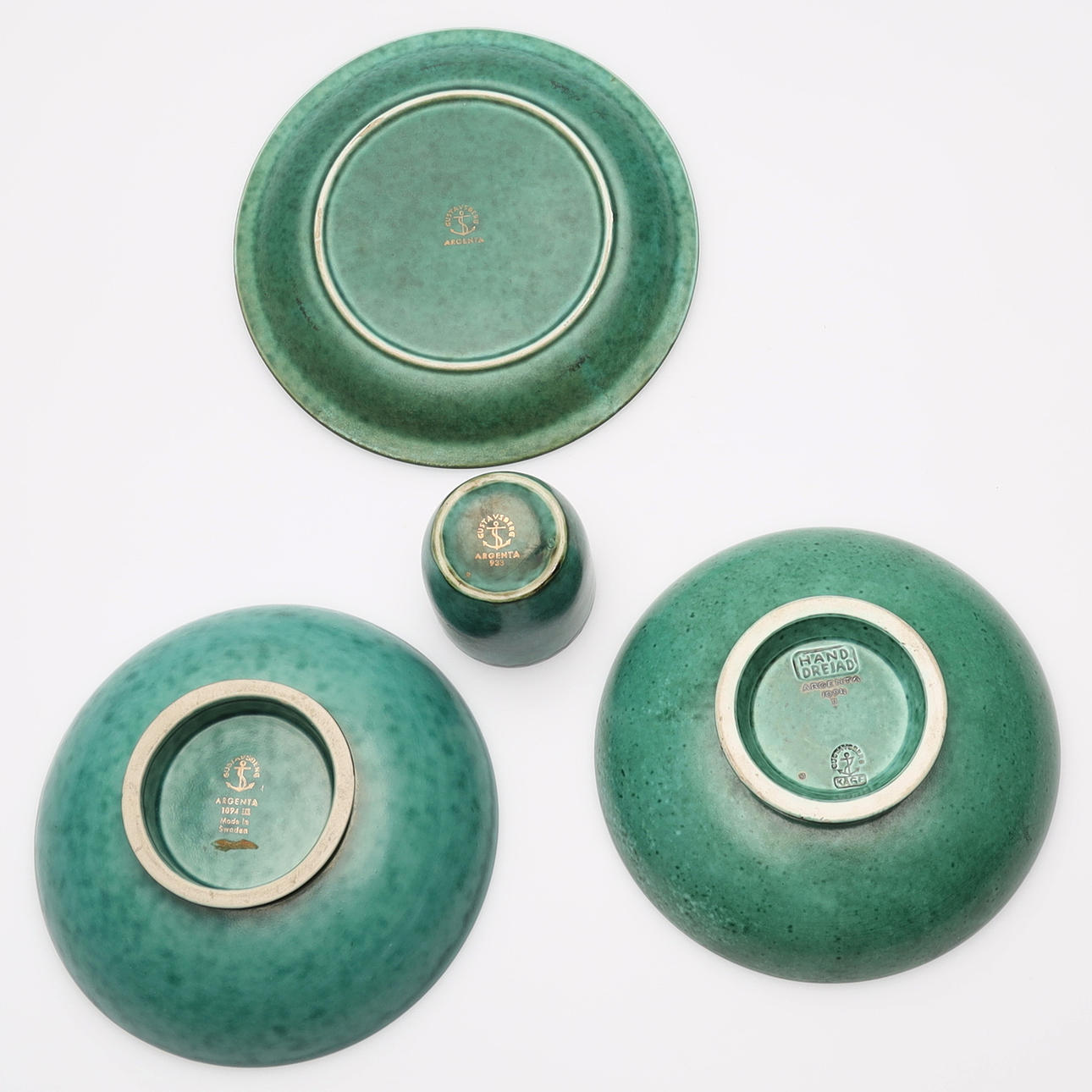 WILHELM KÅGE. gres, «Argenta», 4 piezas, Gustavsberg.