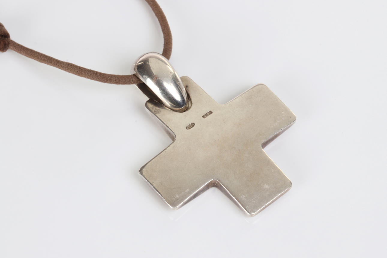 Collar de plata con correa textil ajustable de aproximadamente 50 x 40 mm.