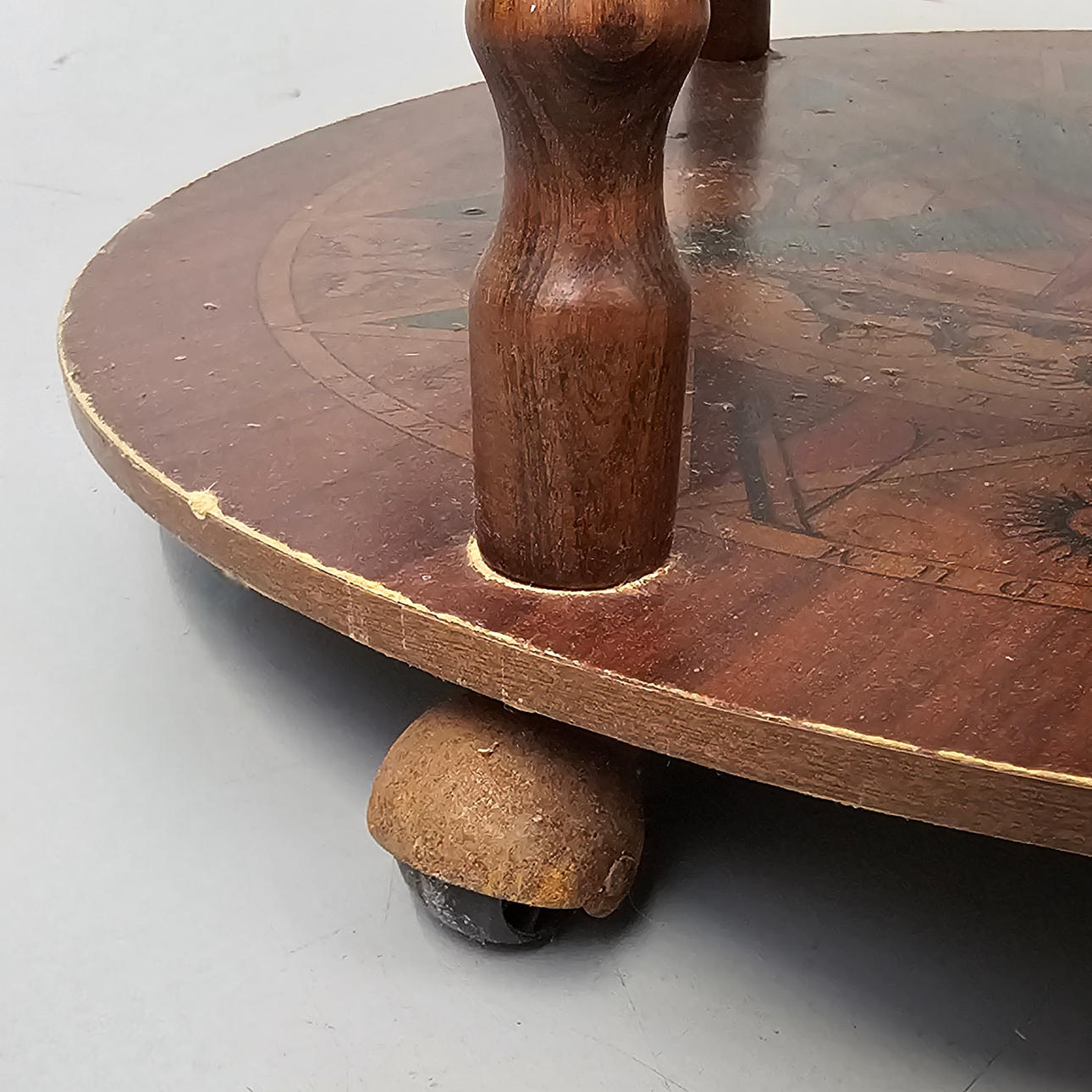 En madera con impresiones pegadas. Típico de los años 80.