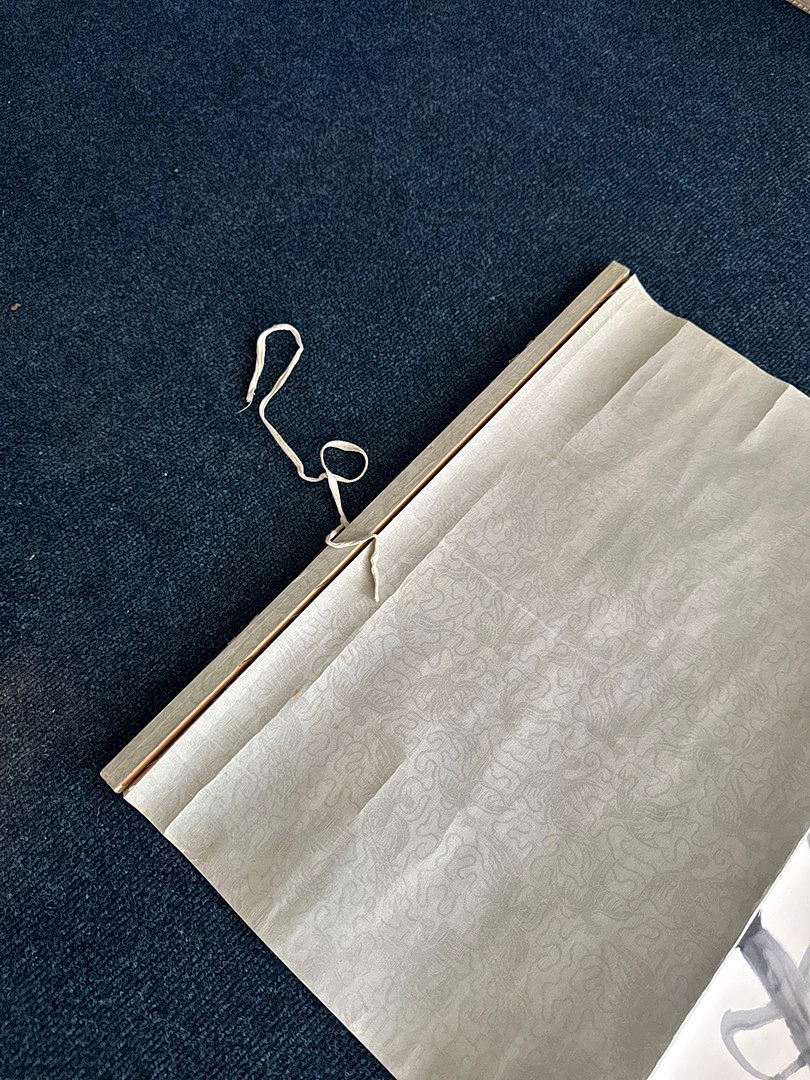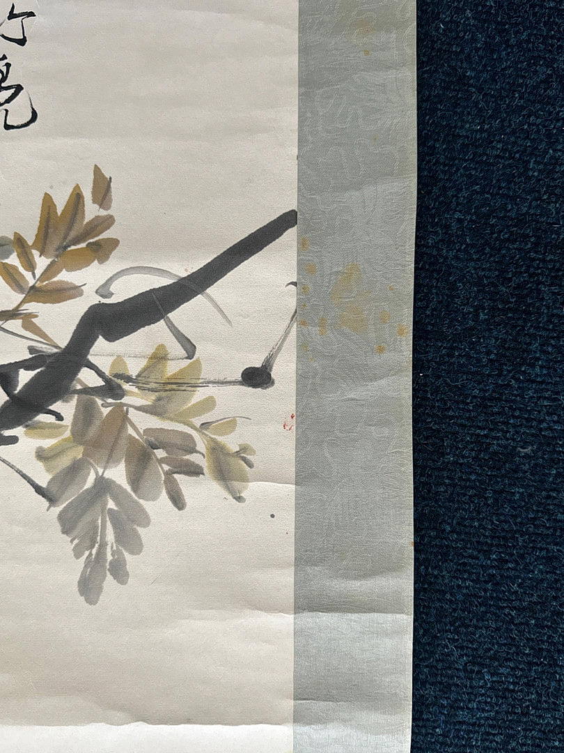Un pergamino en acuarela de un pato montado sobre papel con un marco de seda, 144 x 60,5 cm.