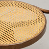 Etiquetado. Asiento de elevación y descenso con función giratoria. Estructura de haya lacada, soporte de asiento de hierro fundido, respaldo y asiento de mimbre ratán.