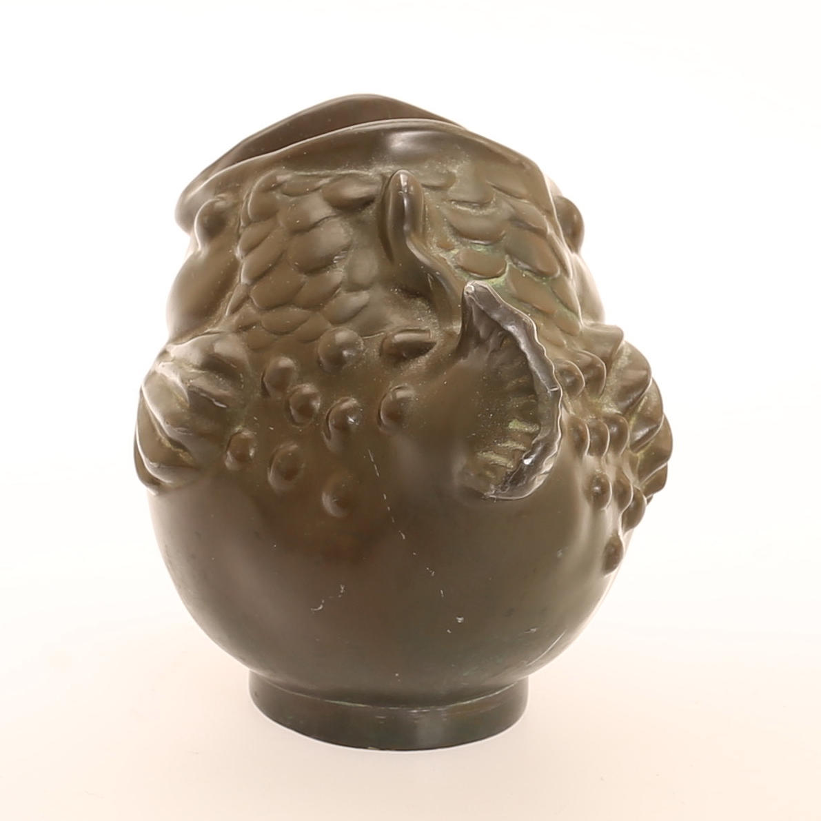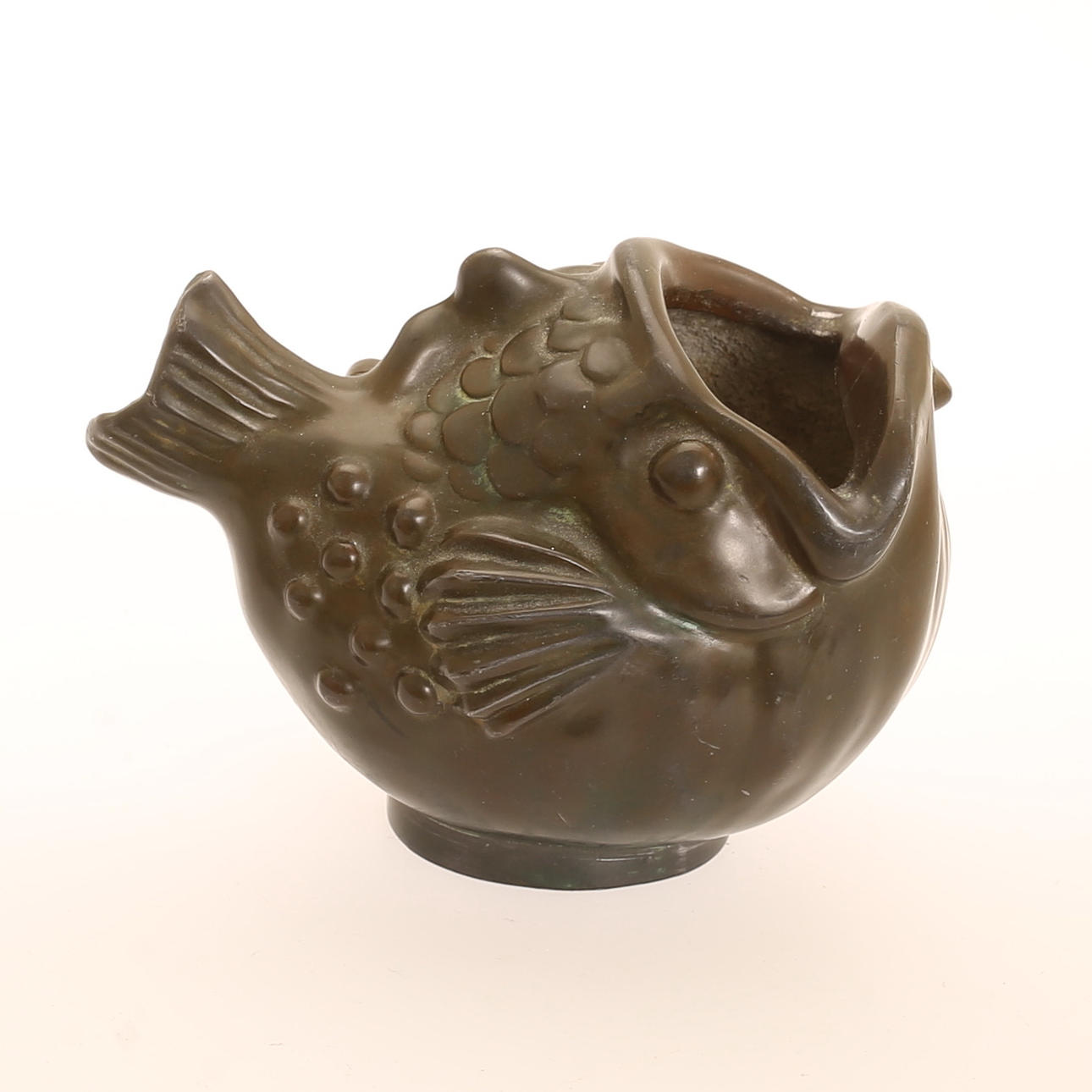 3245732. JUST ANDERSEN. Jarrón en forma de pez, metal, Dinamarca.