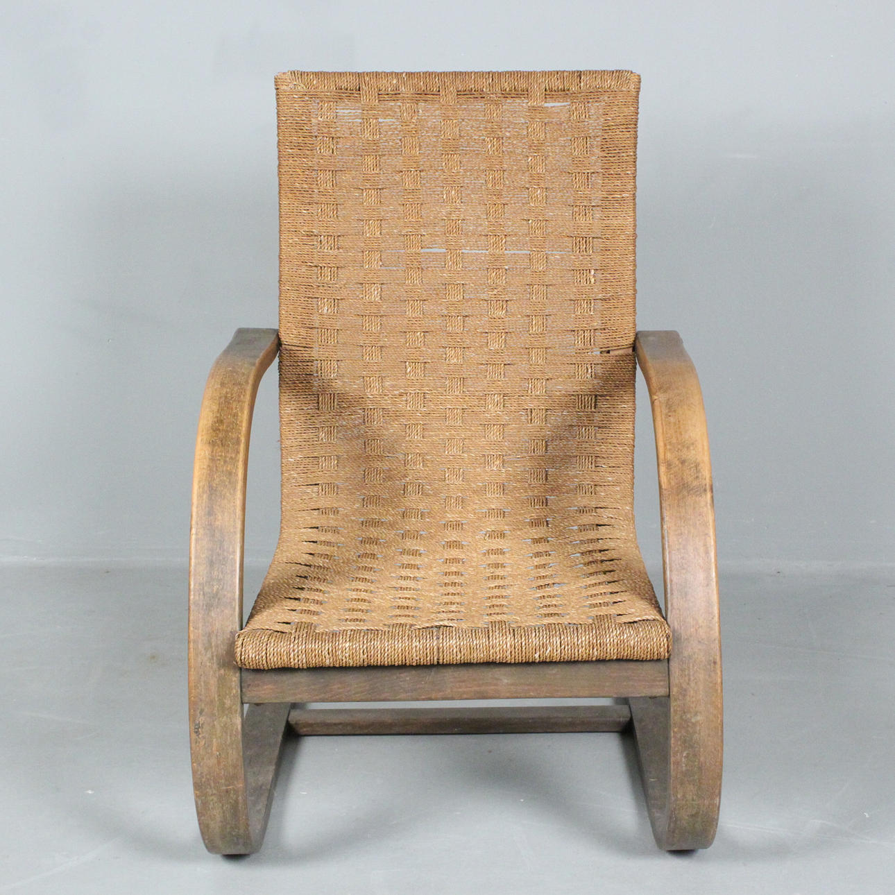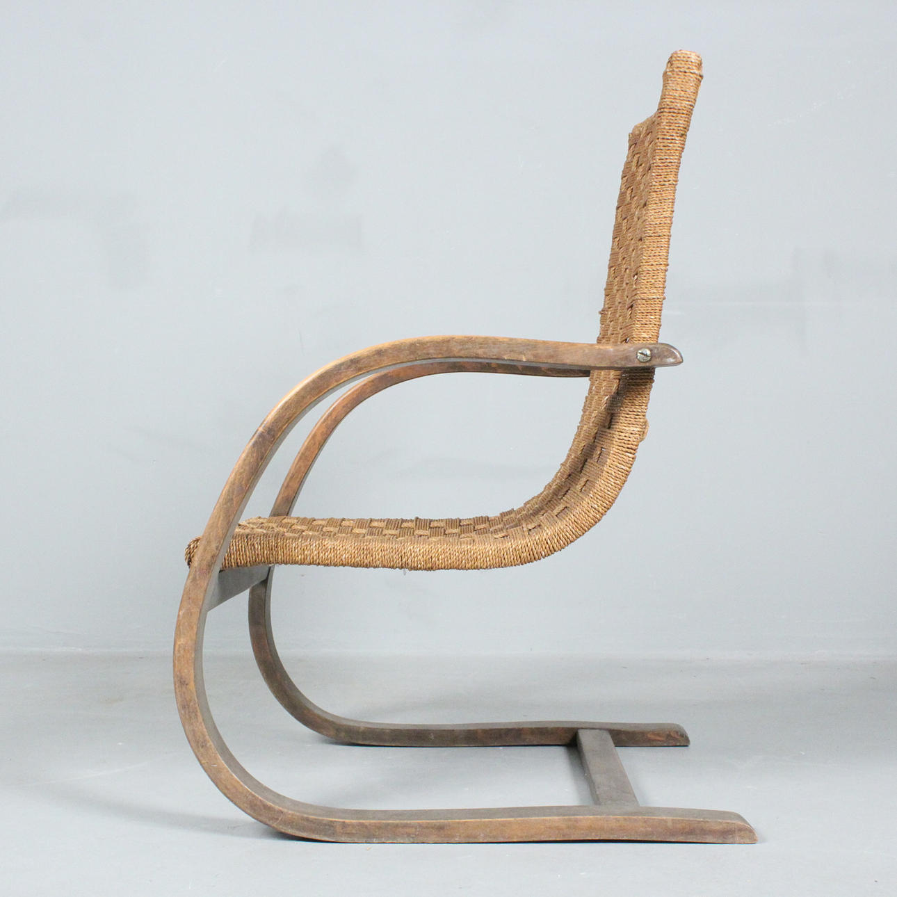 silla voladiza de los años 30, asiento de mimbre,