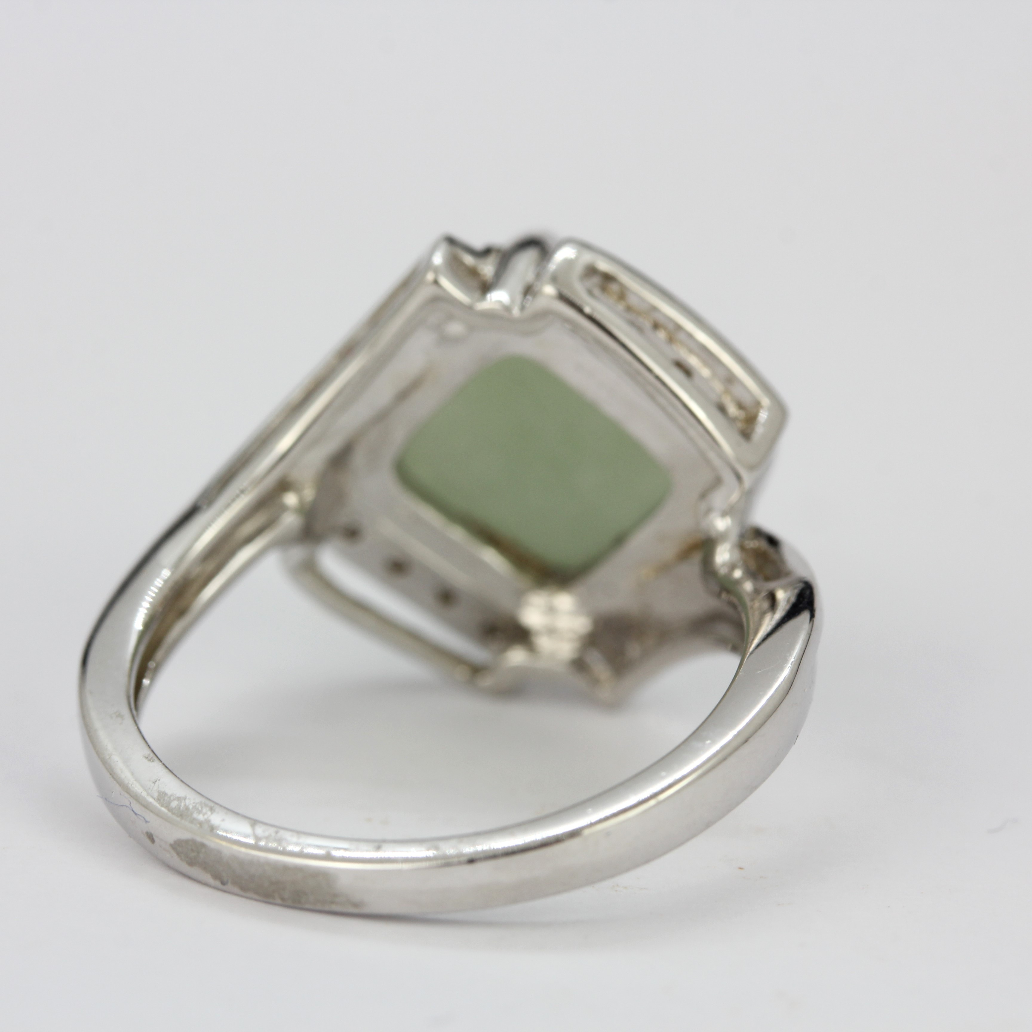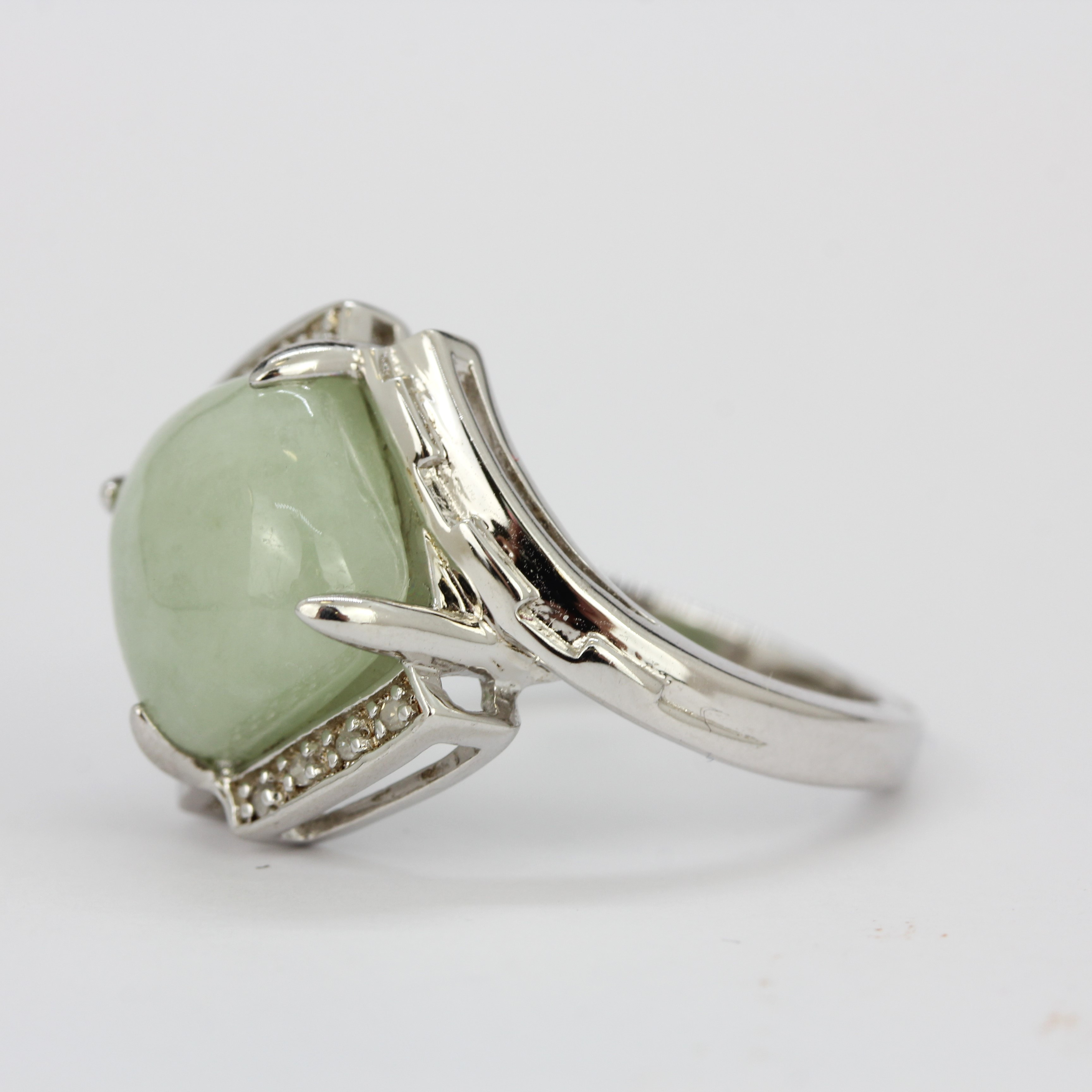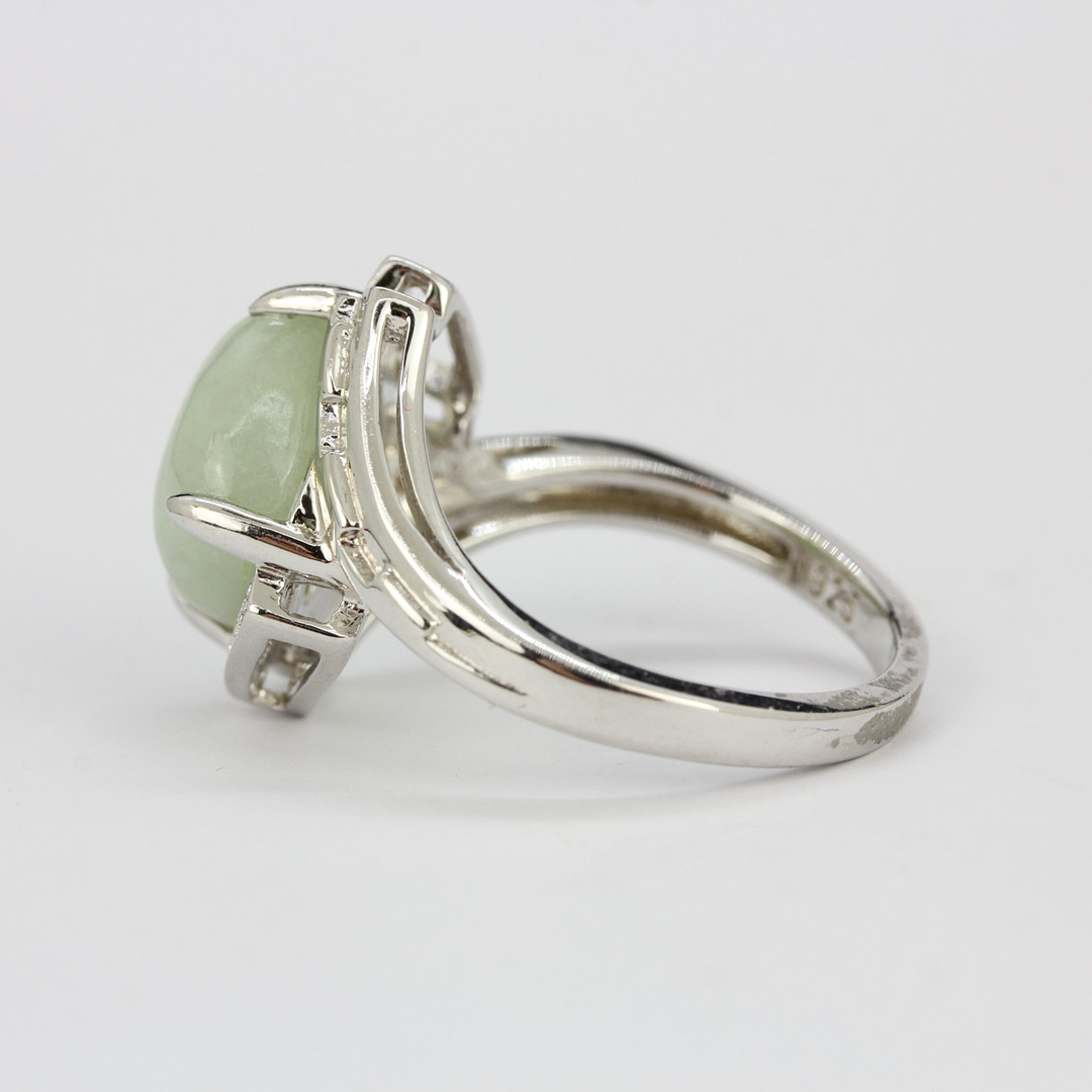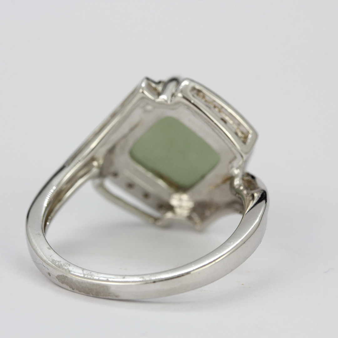 3260359. ANILLO DE PLATA, JADE Y PIEDRA BLANCA.