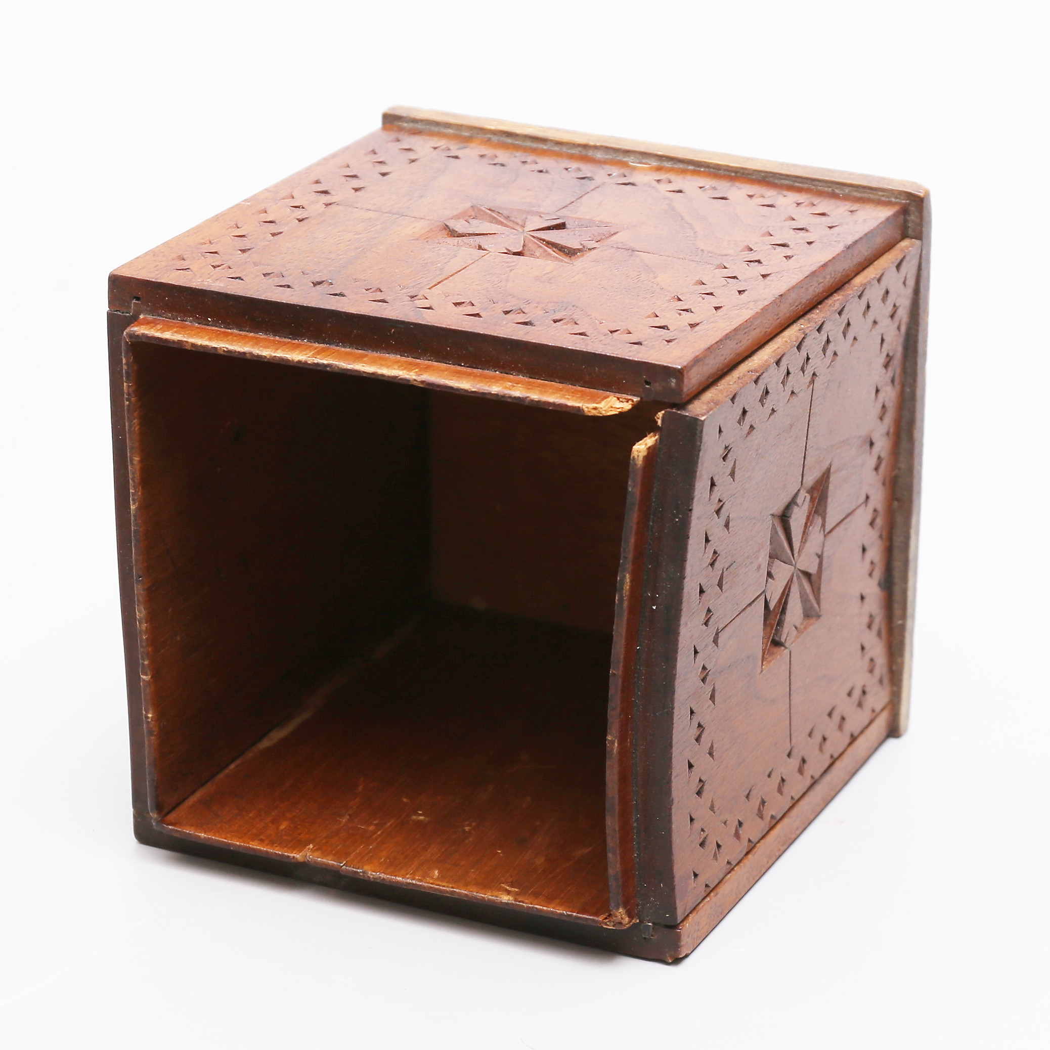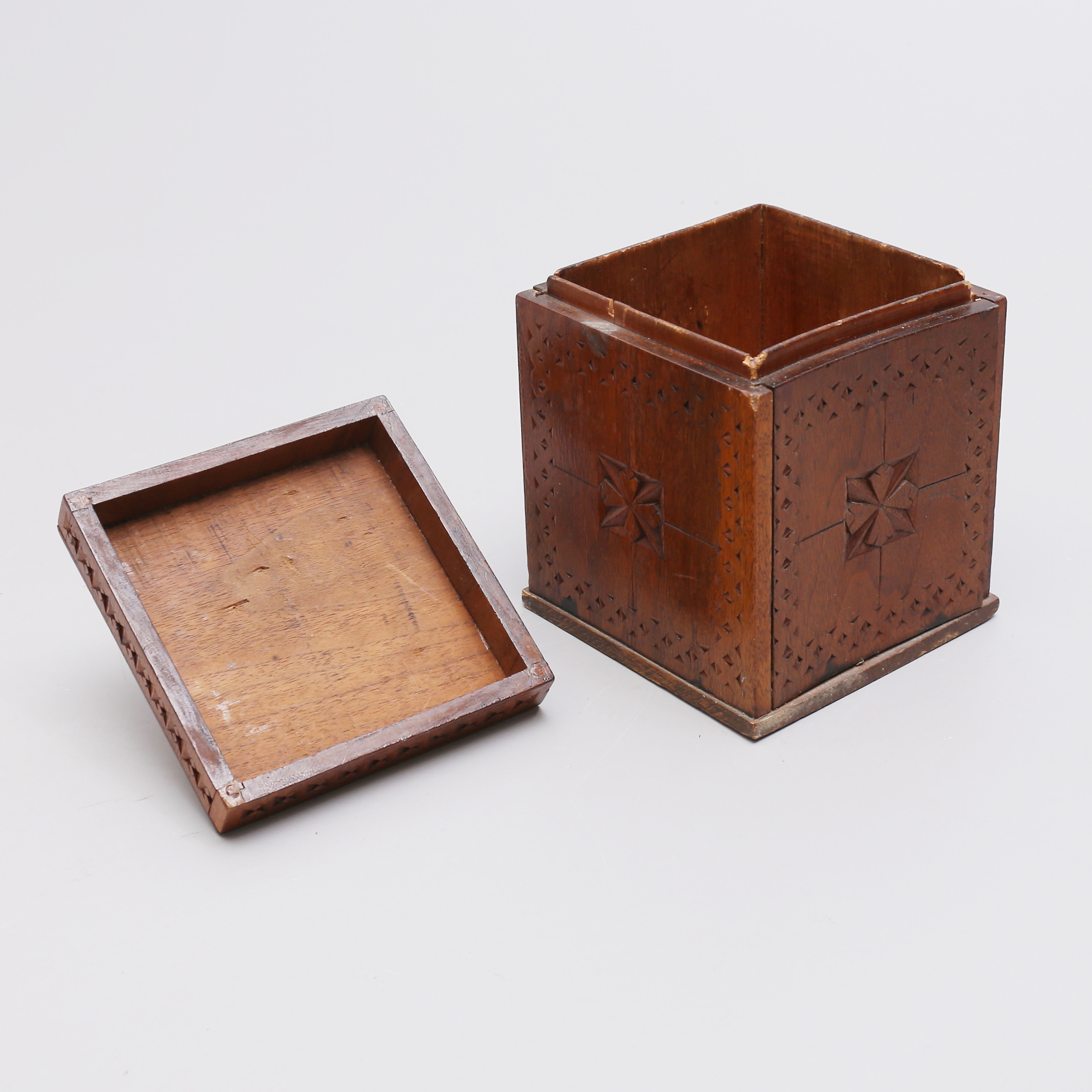 3267080. Caja con tapa, madera cortada, siglo XX.
