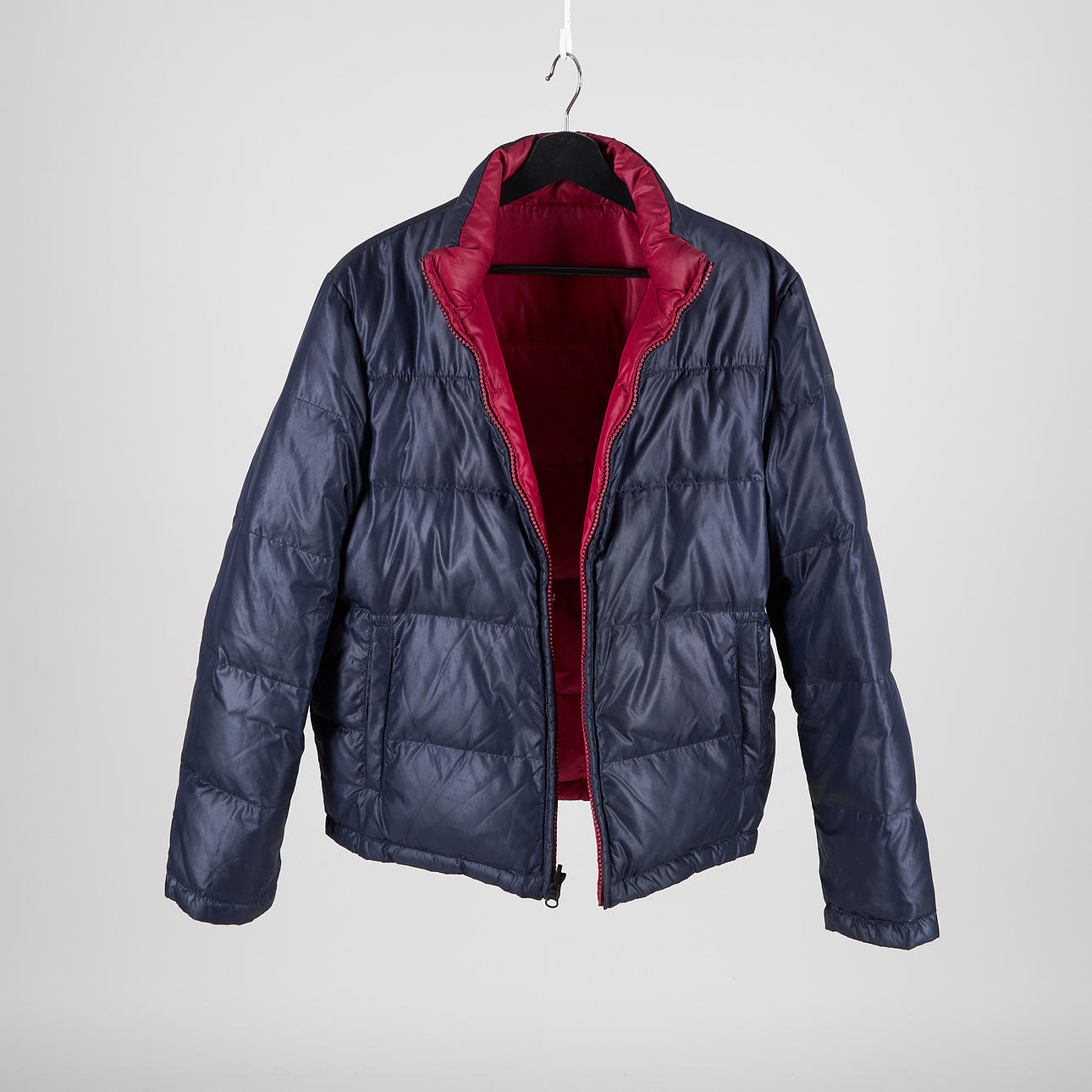 Azul y fucsia, ancho de hombros 47 cm, longitud de espalda 64 cm.
