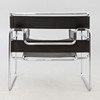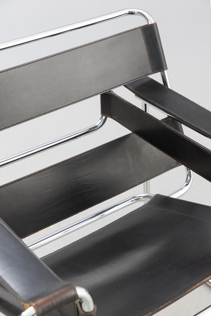 «Silla Wassily» de Marcel Breuer. Fabricante: Gavina Diseño de 1925. Estructura de acero cromado y piel negra.