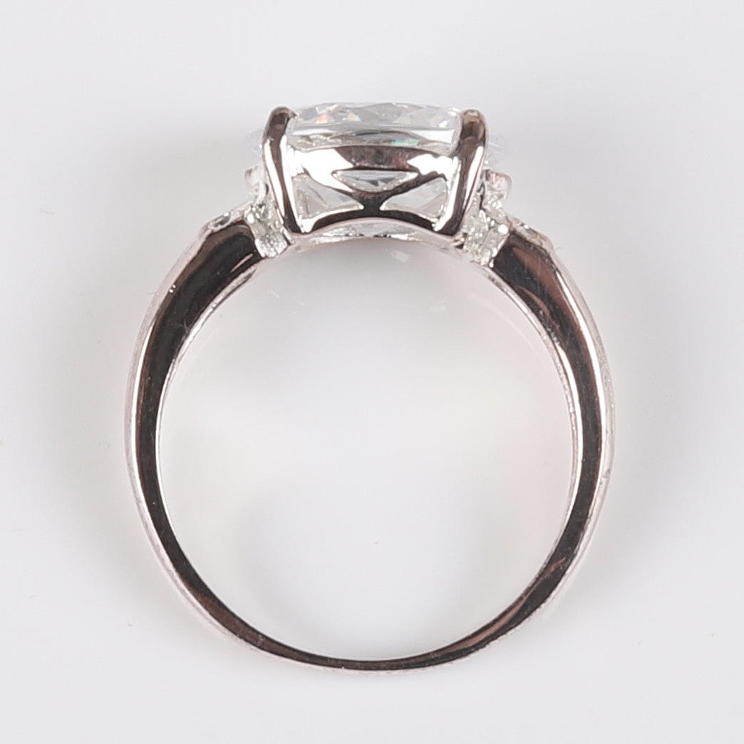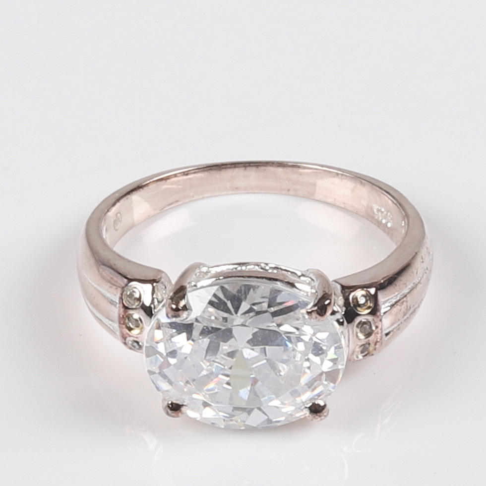 Anillo de plata de ley con talla ovalada y 6 circonitas cúbicas de talla brillante