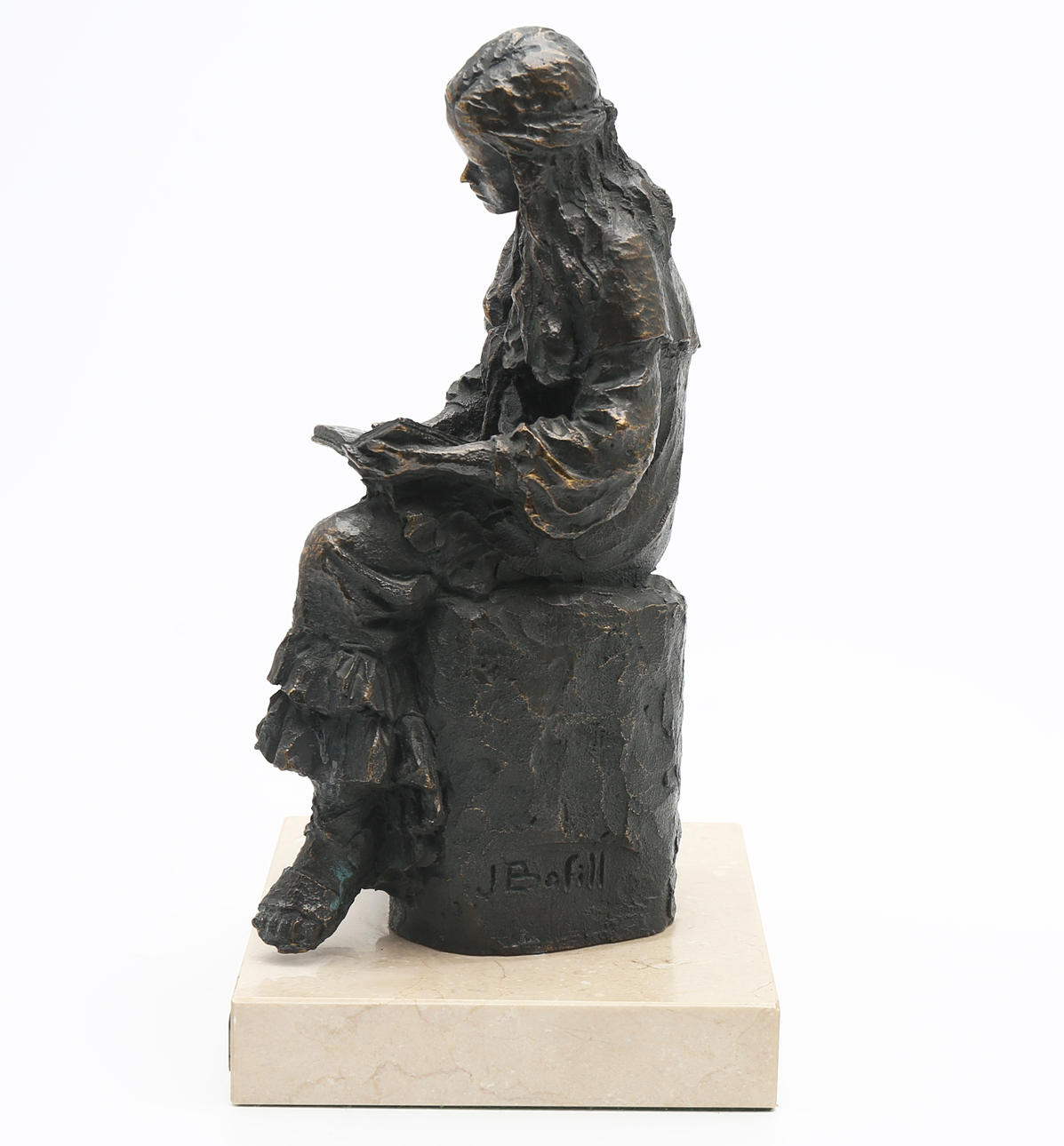 Escultura en resina patinada en bronce con peana en mármol