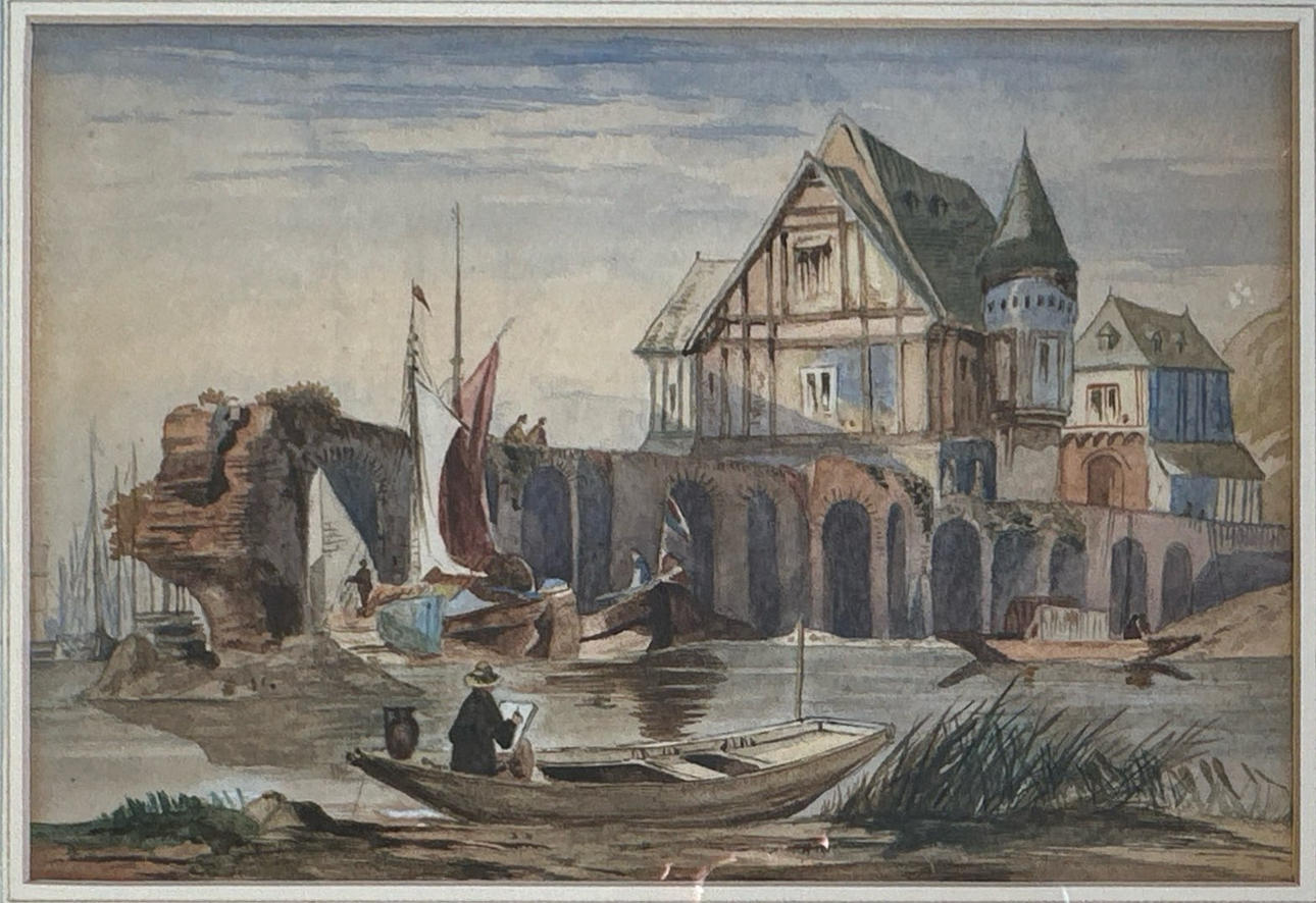 Acuarela del siglo XIX con marco dorado, tamaño de marco 48 x 37,5 cm.