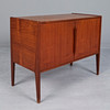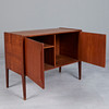 Armario/cómoda, teca, años 60, Escandinavia. Cajonera pequeña de teca vidriada con cuerpo rectangular y dos puertas, dos compartimentos en el interior, uno de ellos con un estante, 60 cm de alto, 78 cm de largo, 37 cm de ancho.