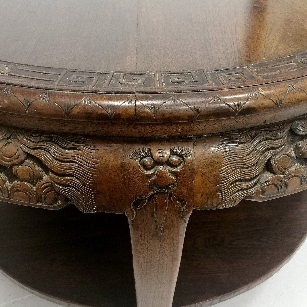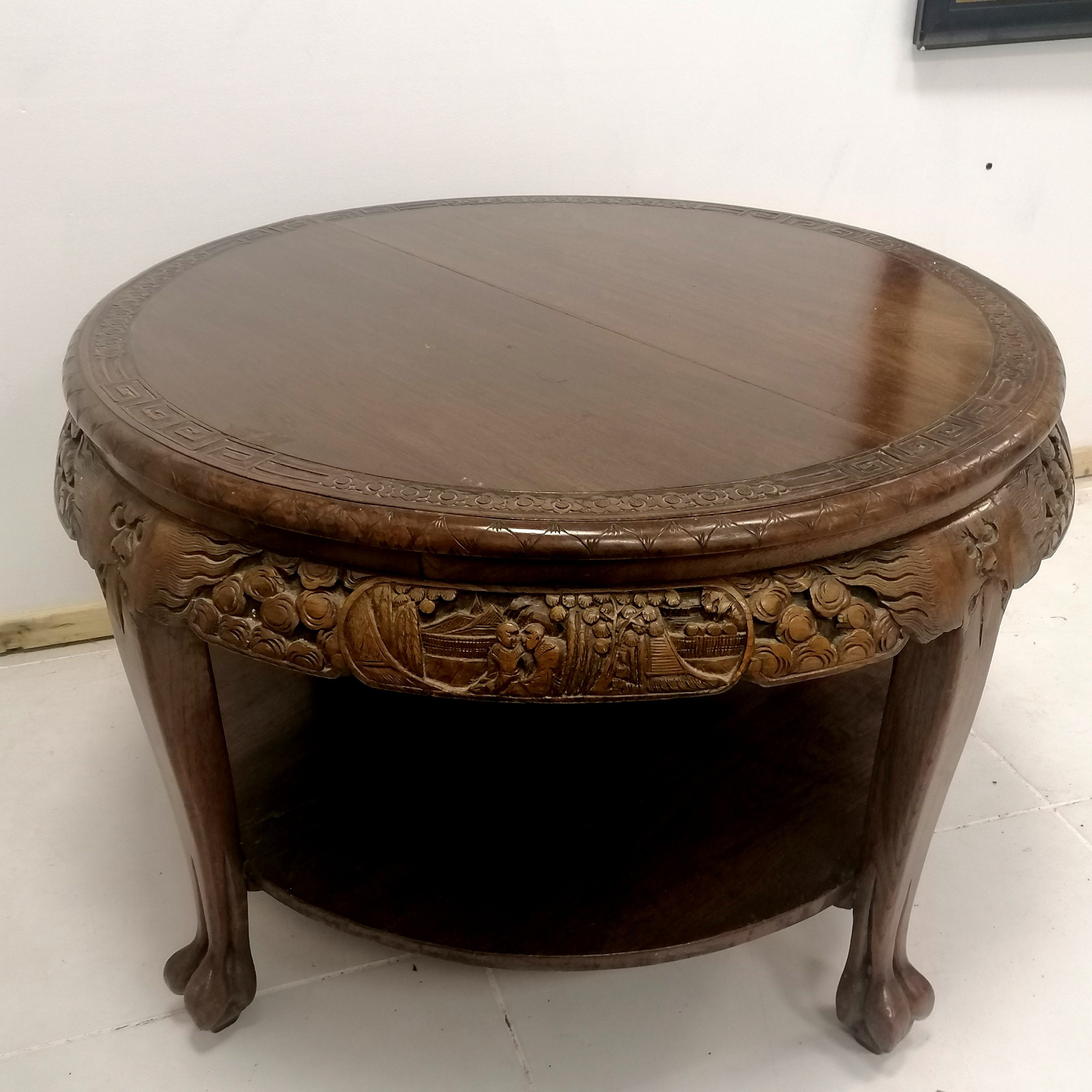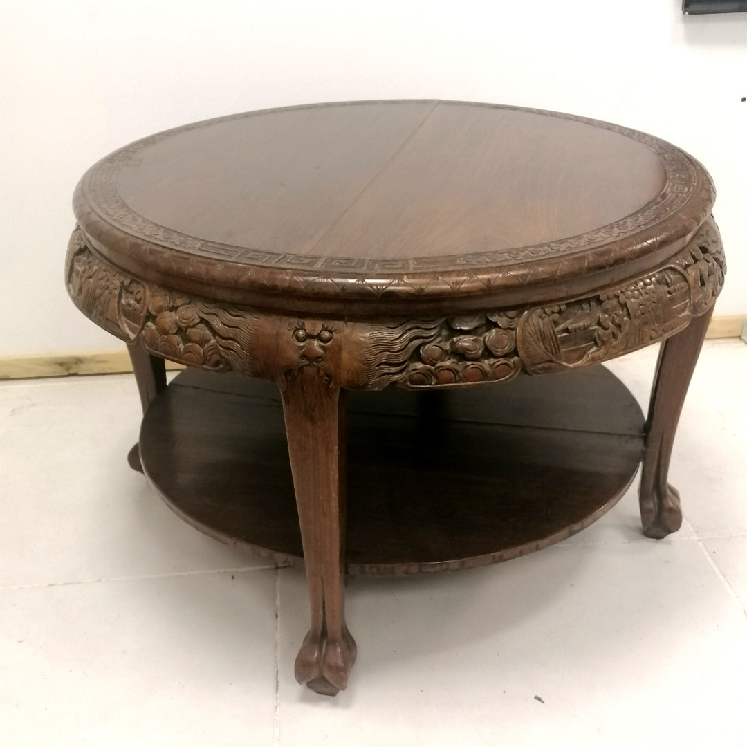 3310133. MESA BAJA CIRCULAR ORIENTAL DE MADERA DURA TALLADA.